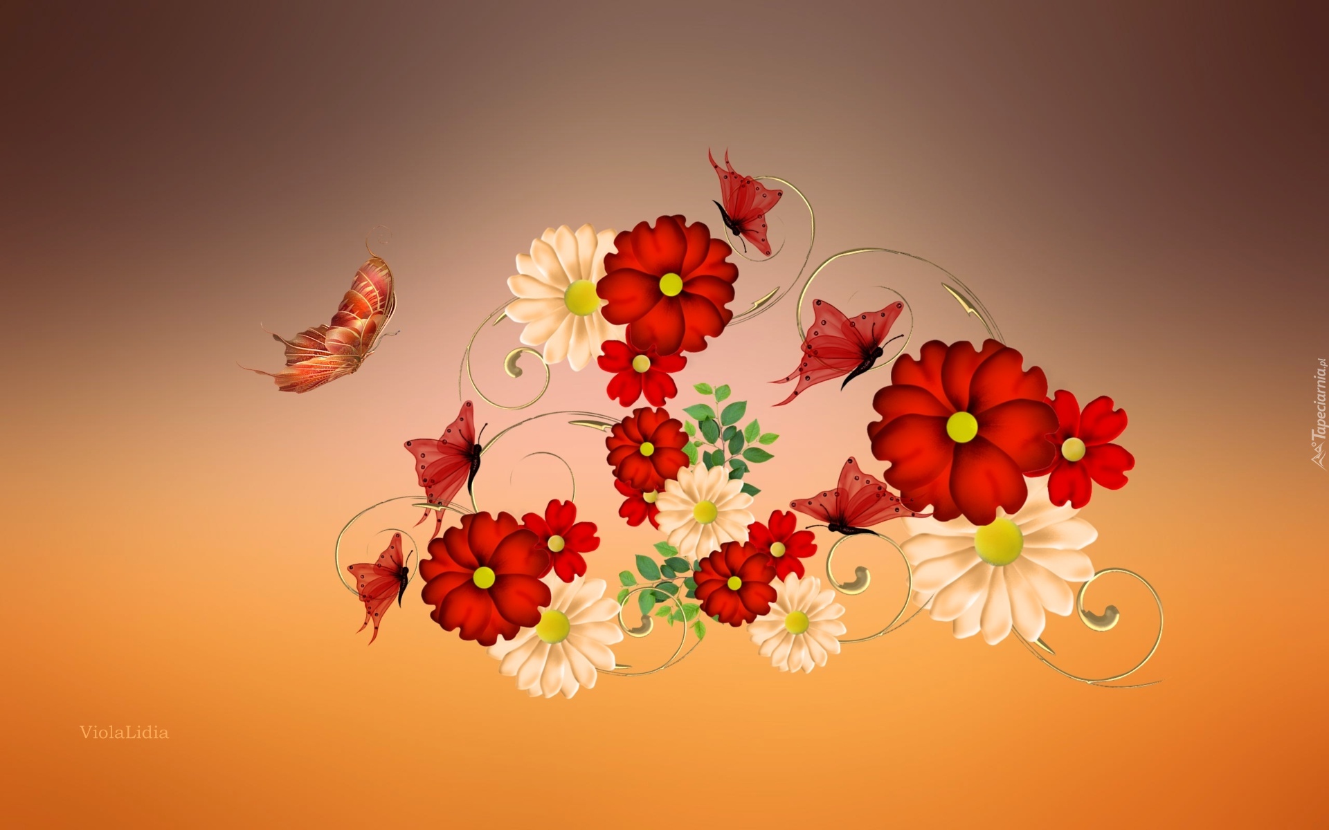 Edytor tapety: Grafika, Motyle, Kwiaty