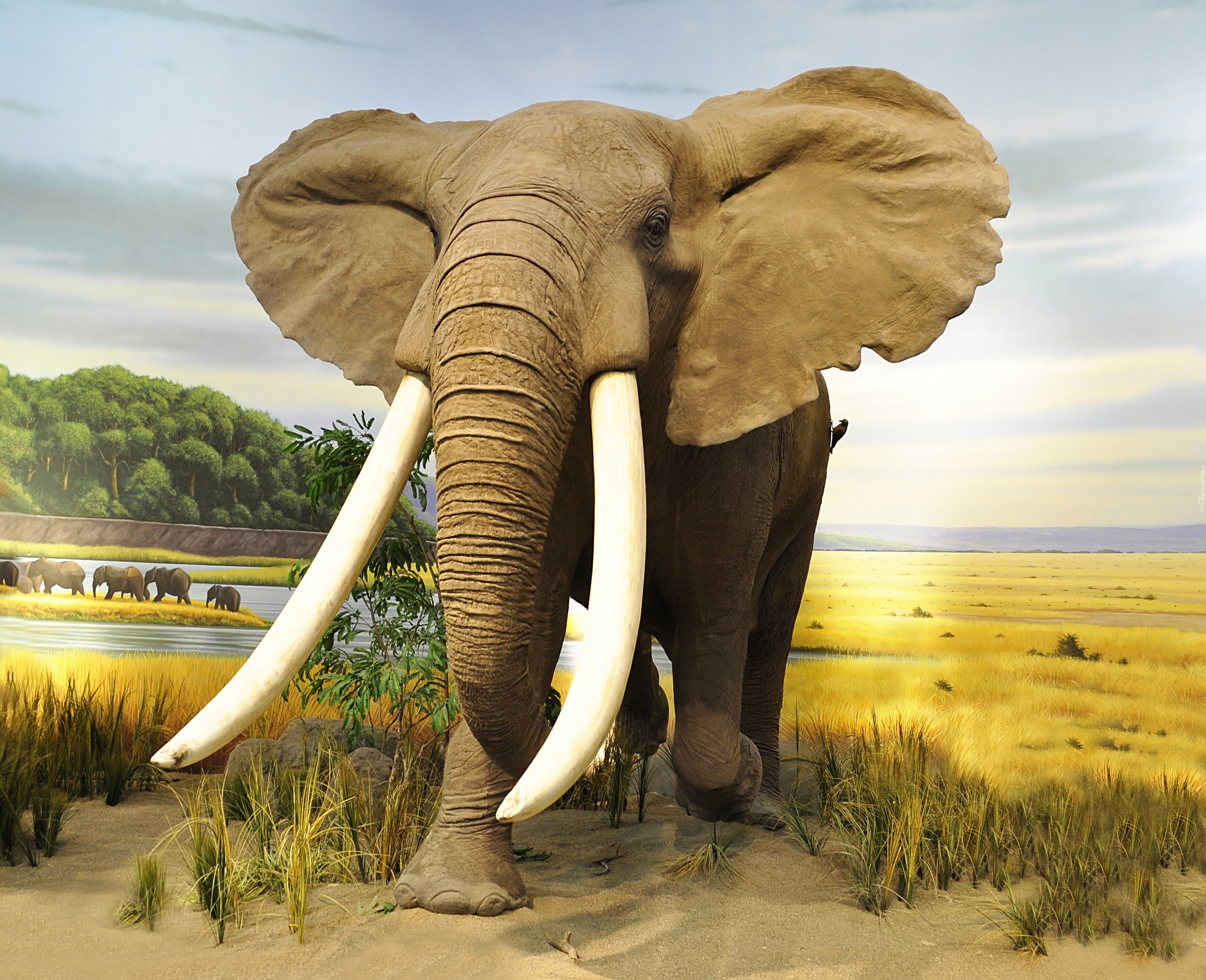 Edytor tapety: Afryka, Sawanna, Słonie, Rzeka, Las