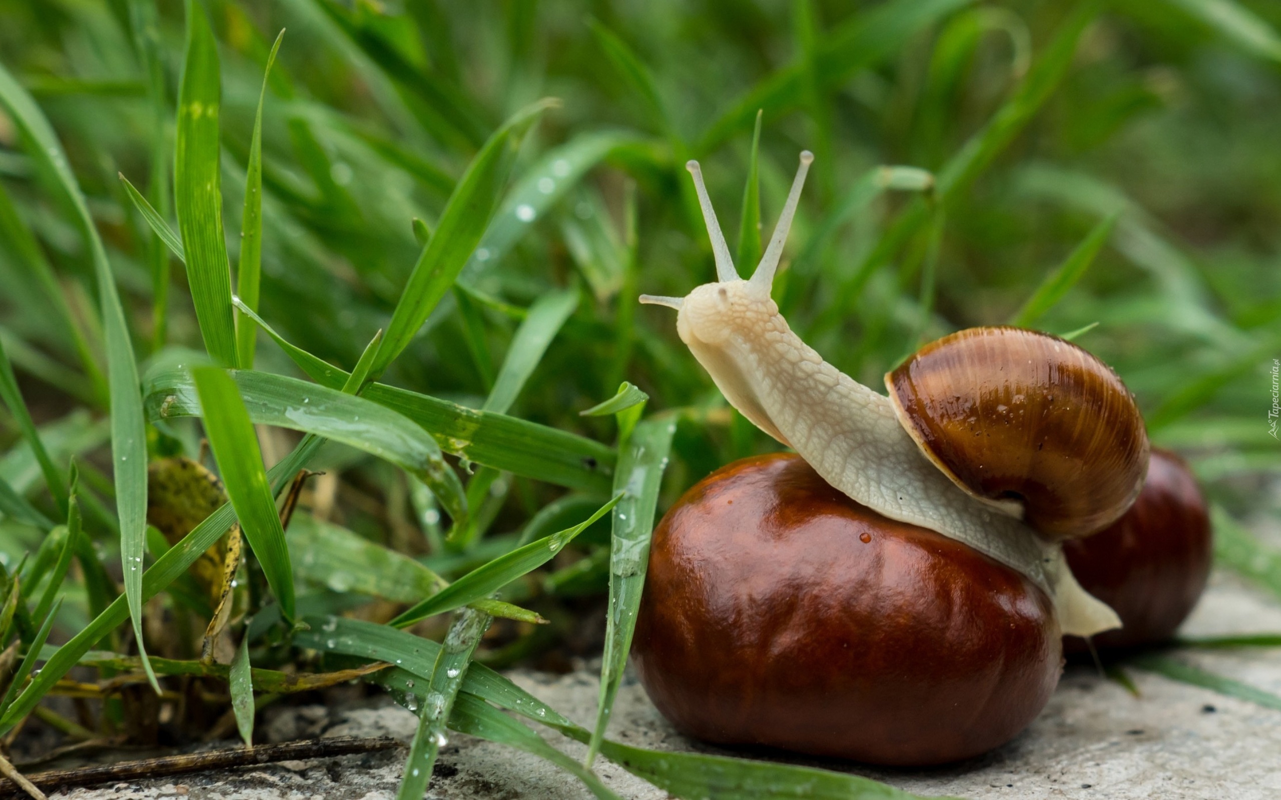 Edytor tapety: Ślimak, Kasztan, Trawa