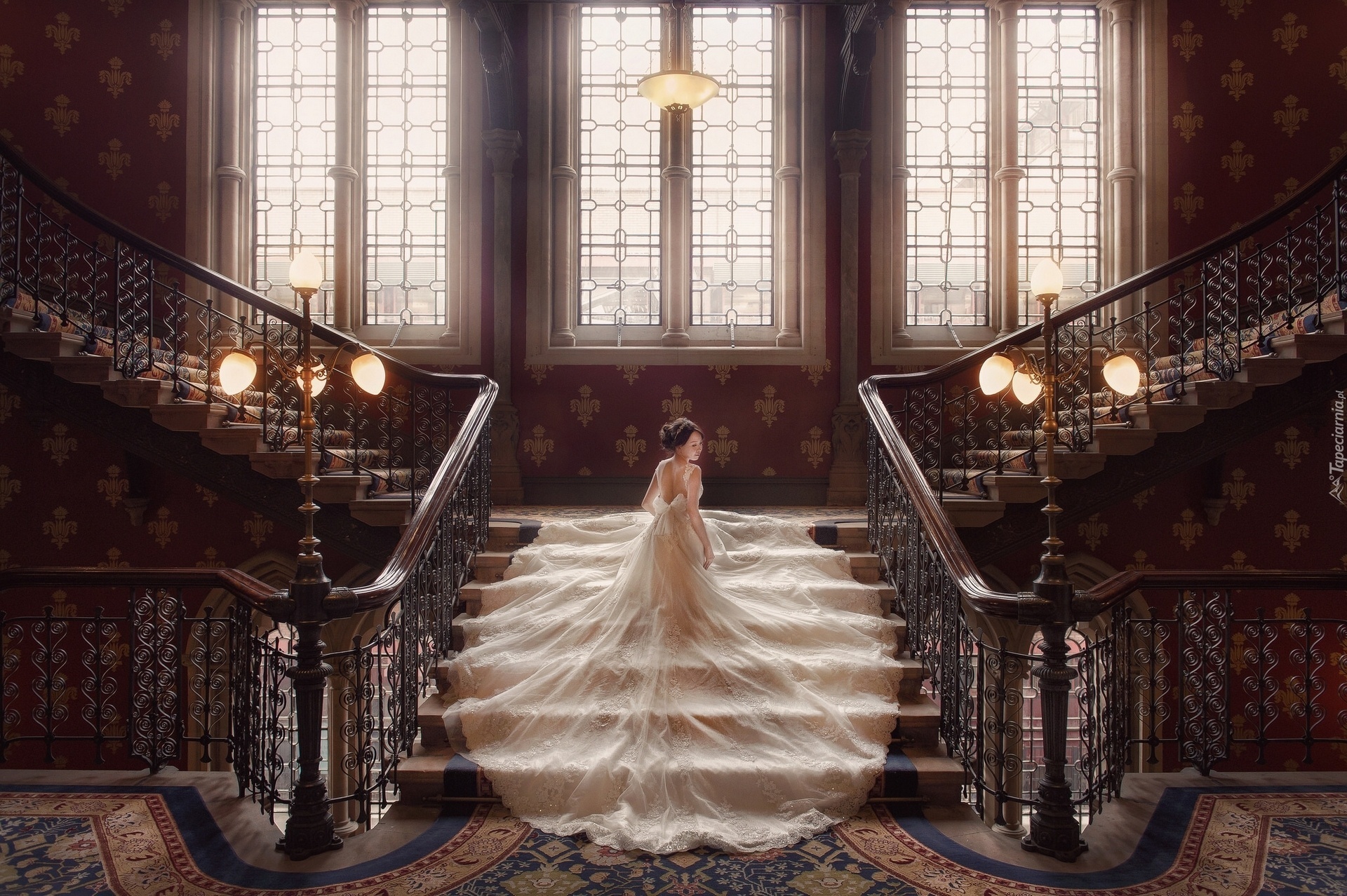 Edytor tapety: Pałac, Schody, Panna, Młoda, Sukienka