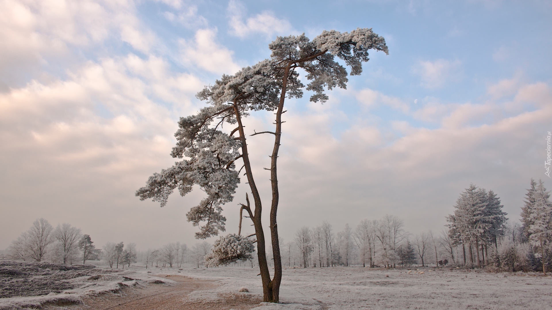 Edytor tapety: Droga, Drzewa, Śnieg