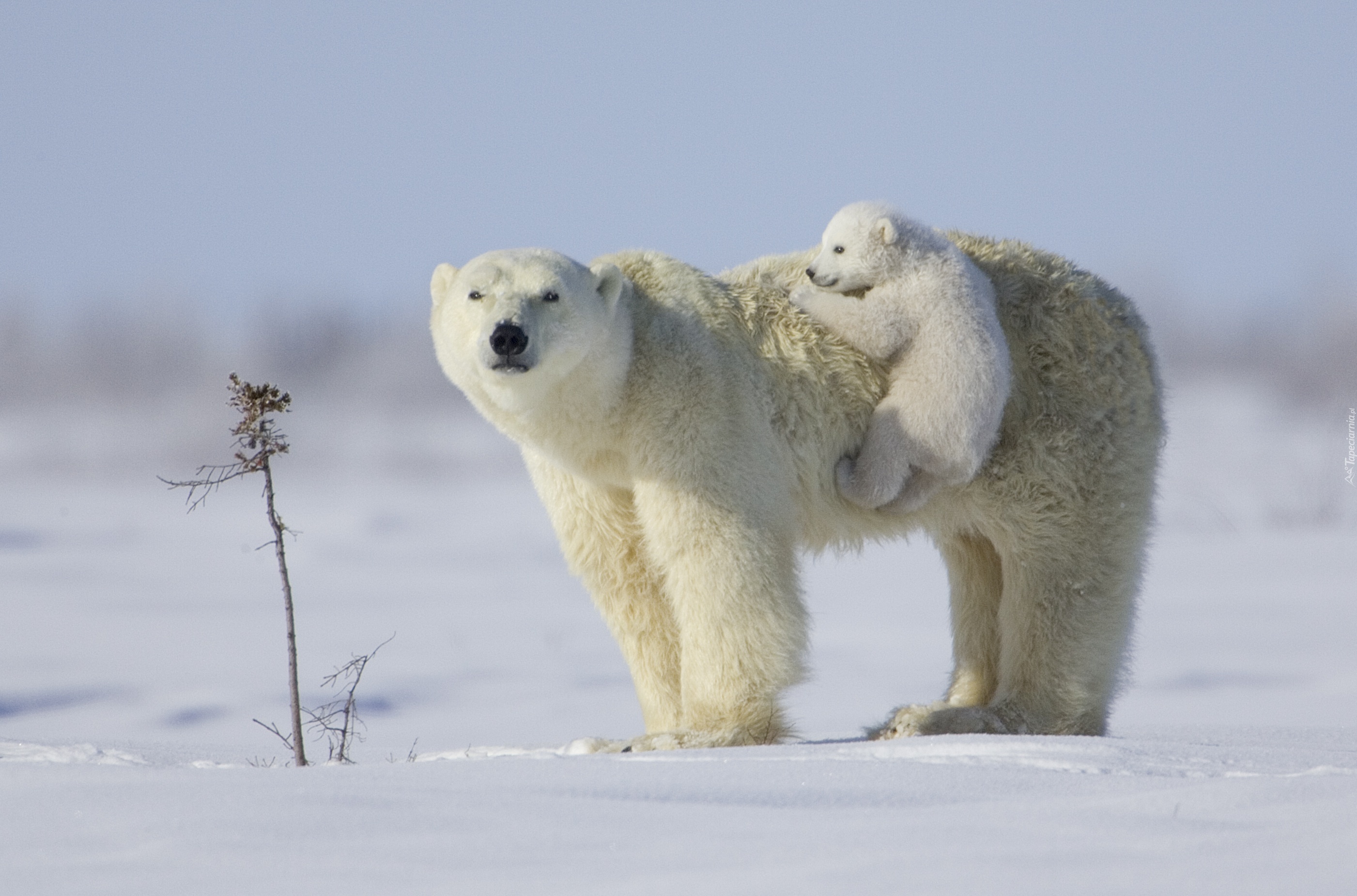 Edytor tapety: Niedźwiedzica, Niedźwiadek, Śnieg
