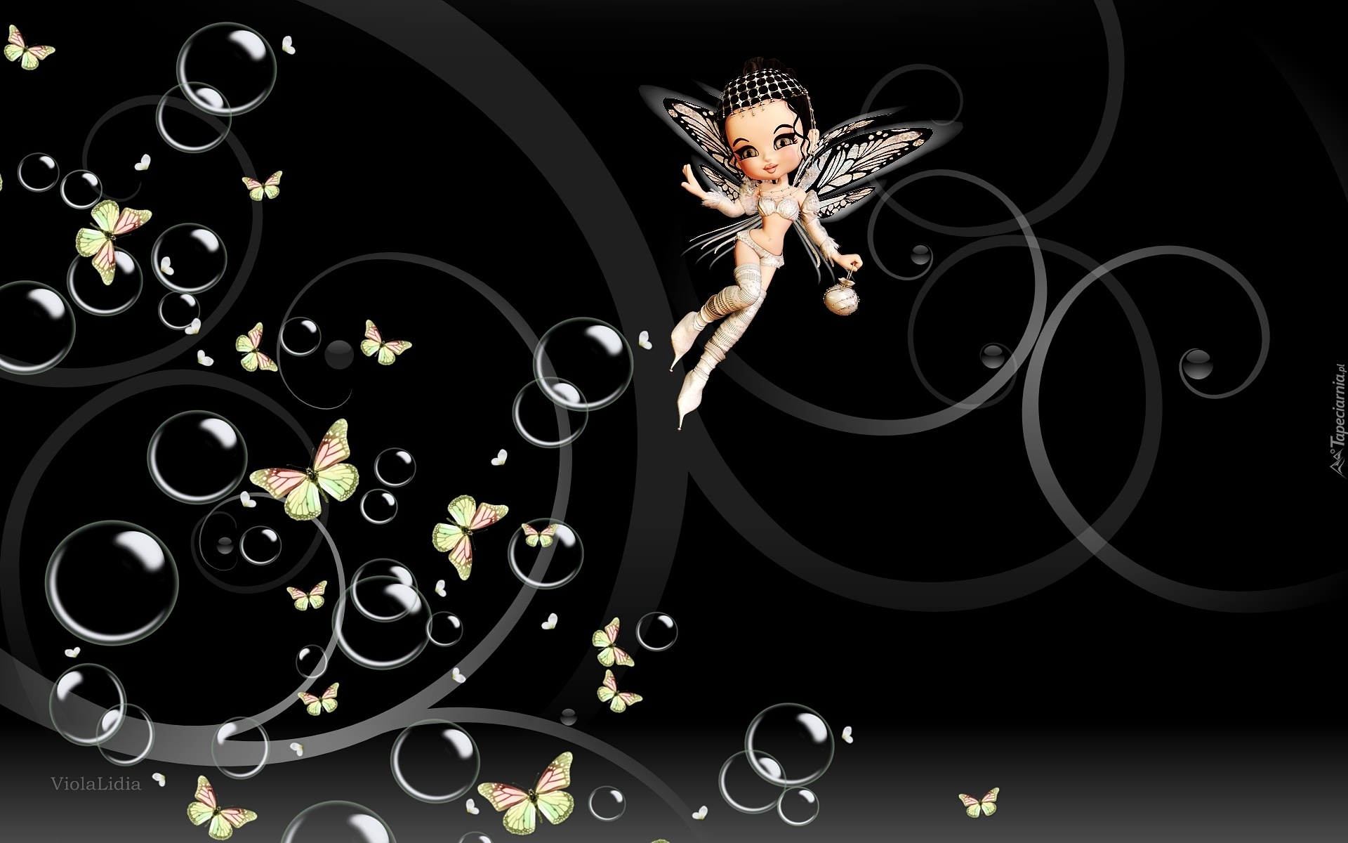 Edytor tapety: Grafika, Motyle, Bańki, Laleczka, Elf