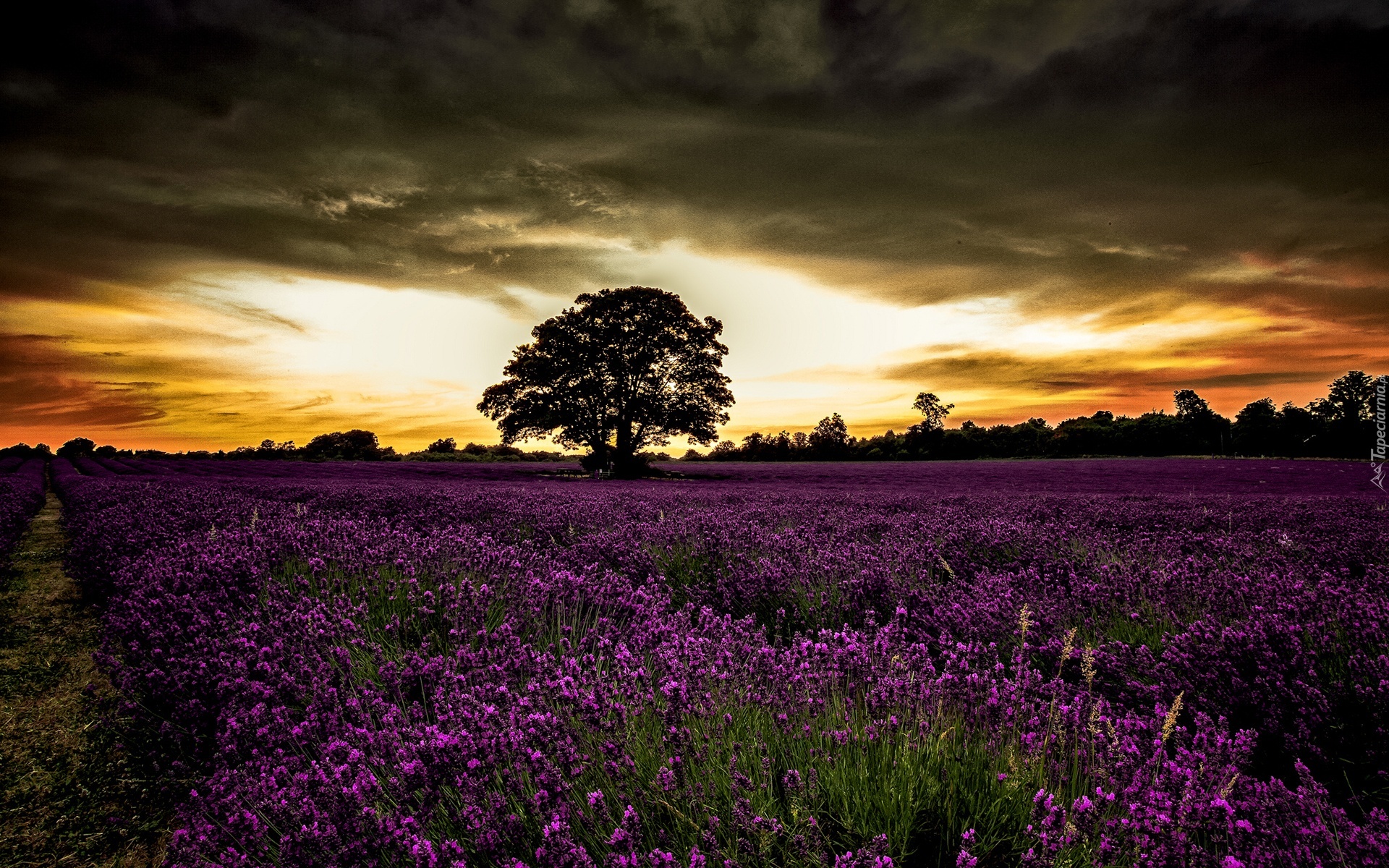 Edytor tapety: Lawenda, Las, Drzewo, Chmury