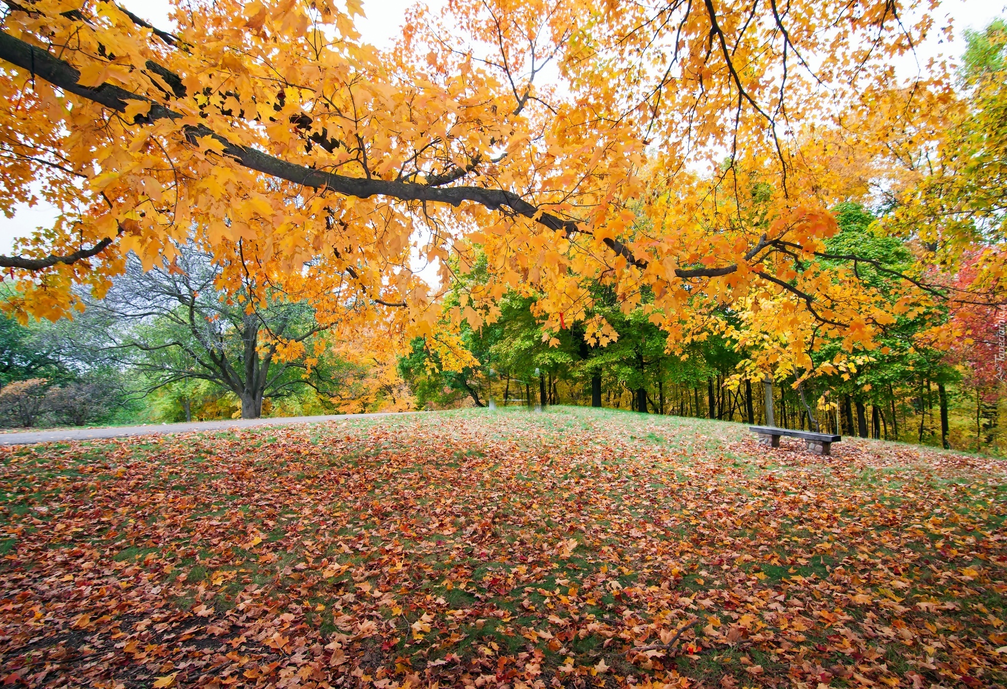 Edytor tapety: Jesień, Park, Ławeczka