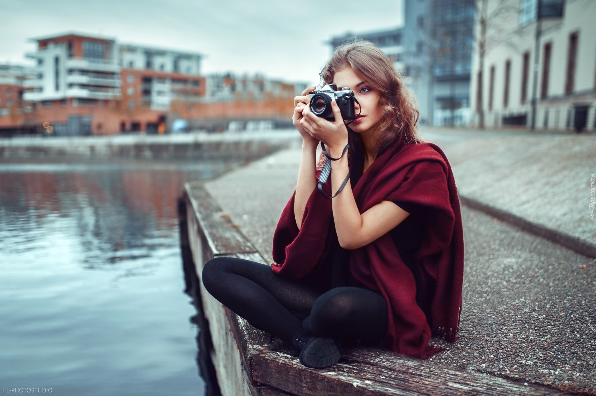 Edytor tapety: Rzeka, Miasto, Kobieta, Aparat, Olympus