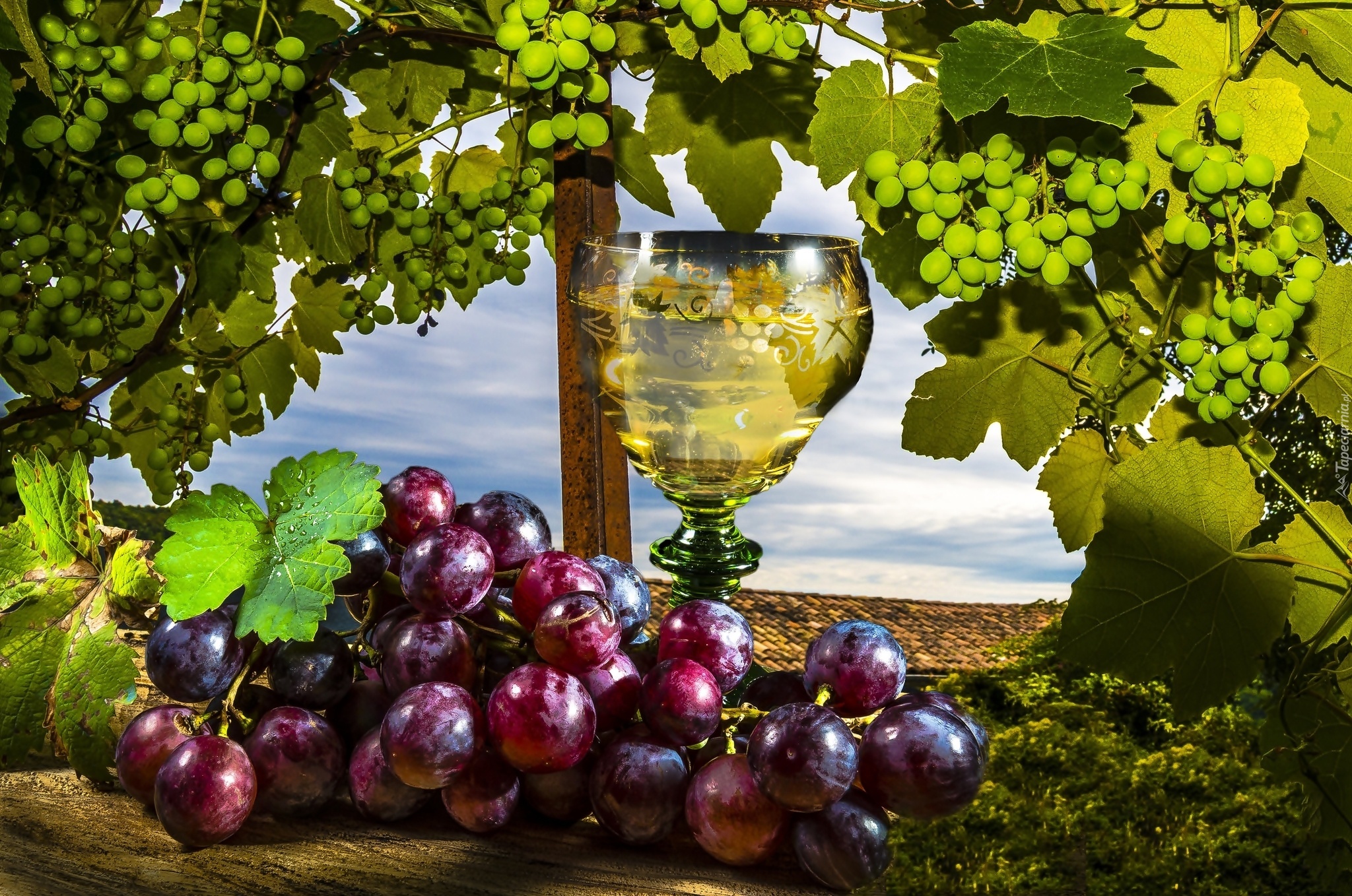 Edytor tapety: Lampka, Wina, Winogrono, Kompozycja