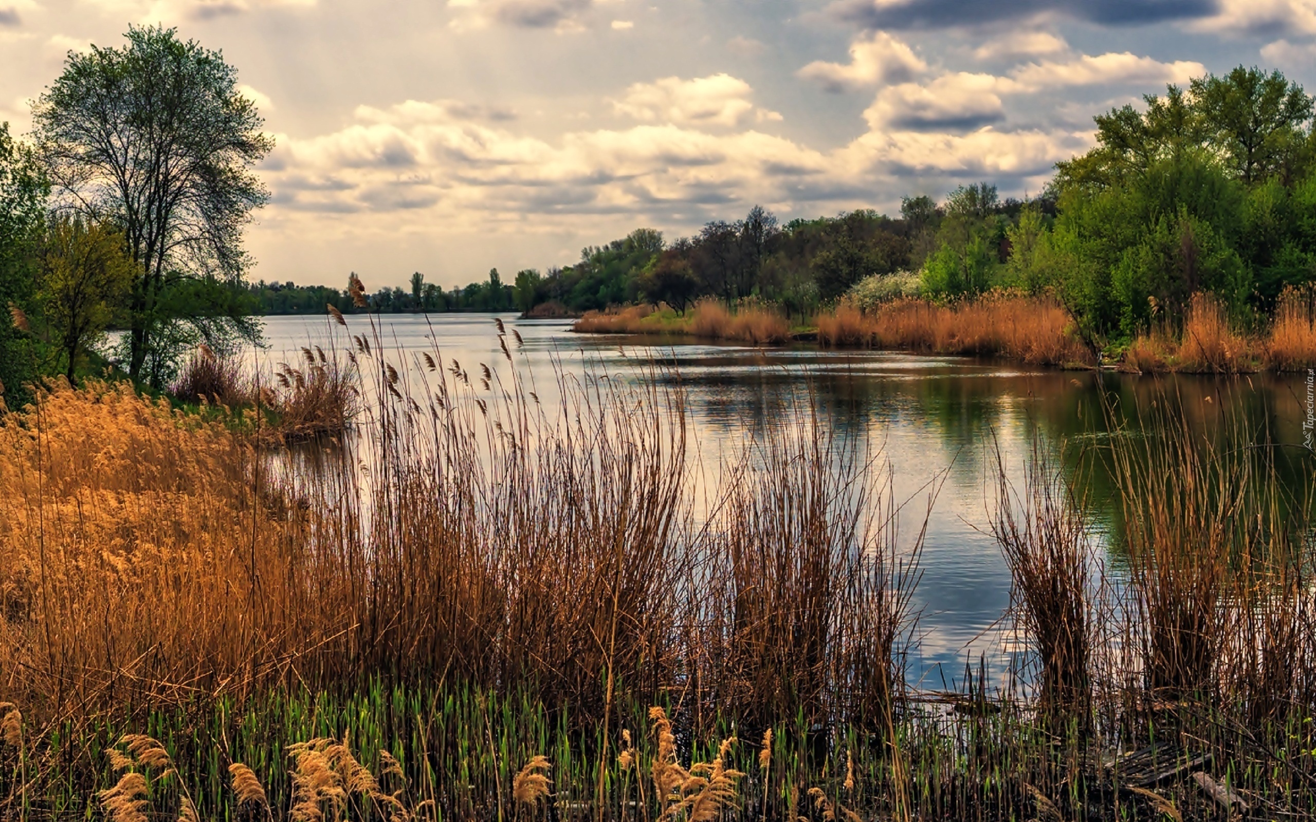 Edytor tapety: Rzeka, Drzewa, Trzciny
