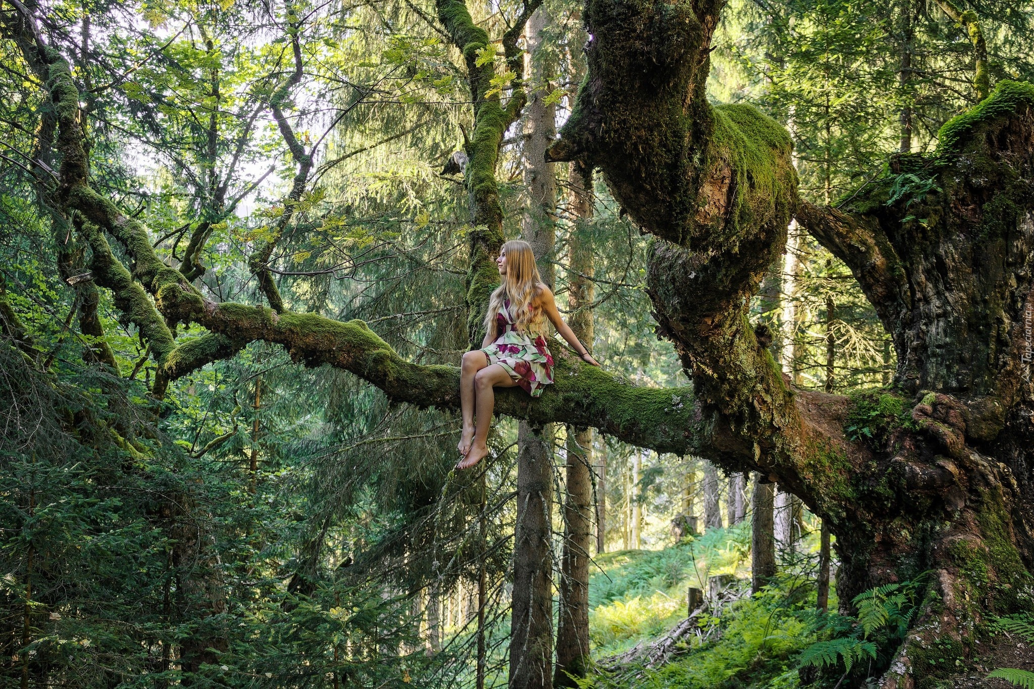 Edytor tapety: Las, Siedząca, Kobieta