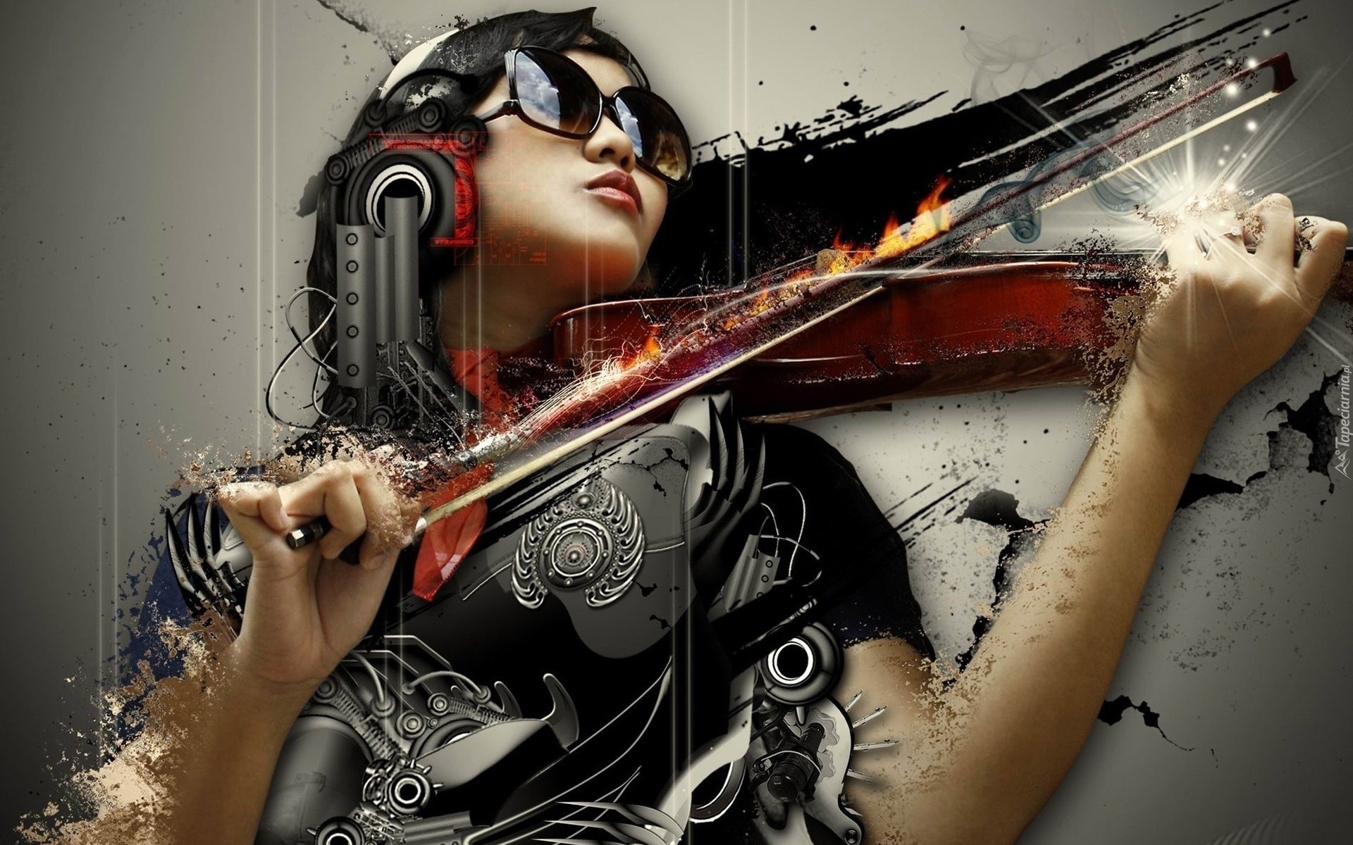 Edytor tapety: Kobieta, Skrzypce, Słuchawki, Okulary