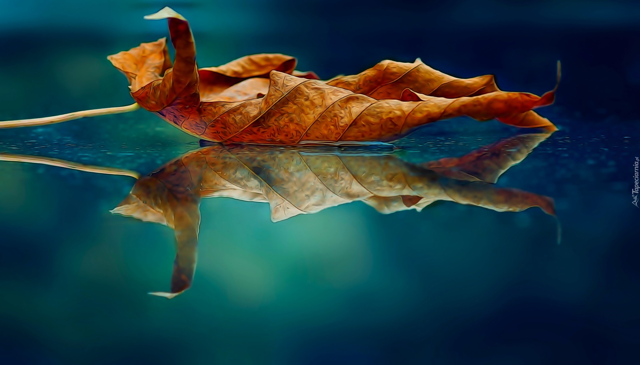 Edytor tapety: Makro, Suchy, Jesienny, Liść, Odbicie