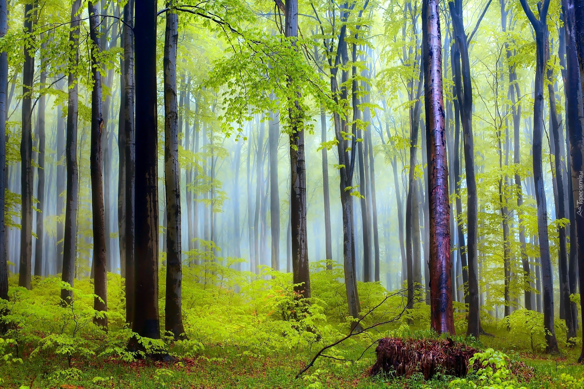 Edytor tapety: Drzewa, Mgła, Poranek, Wiosna