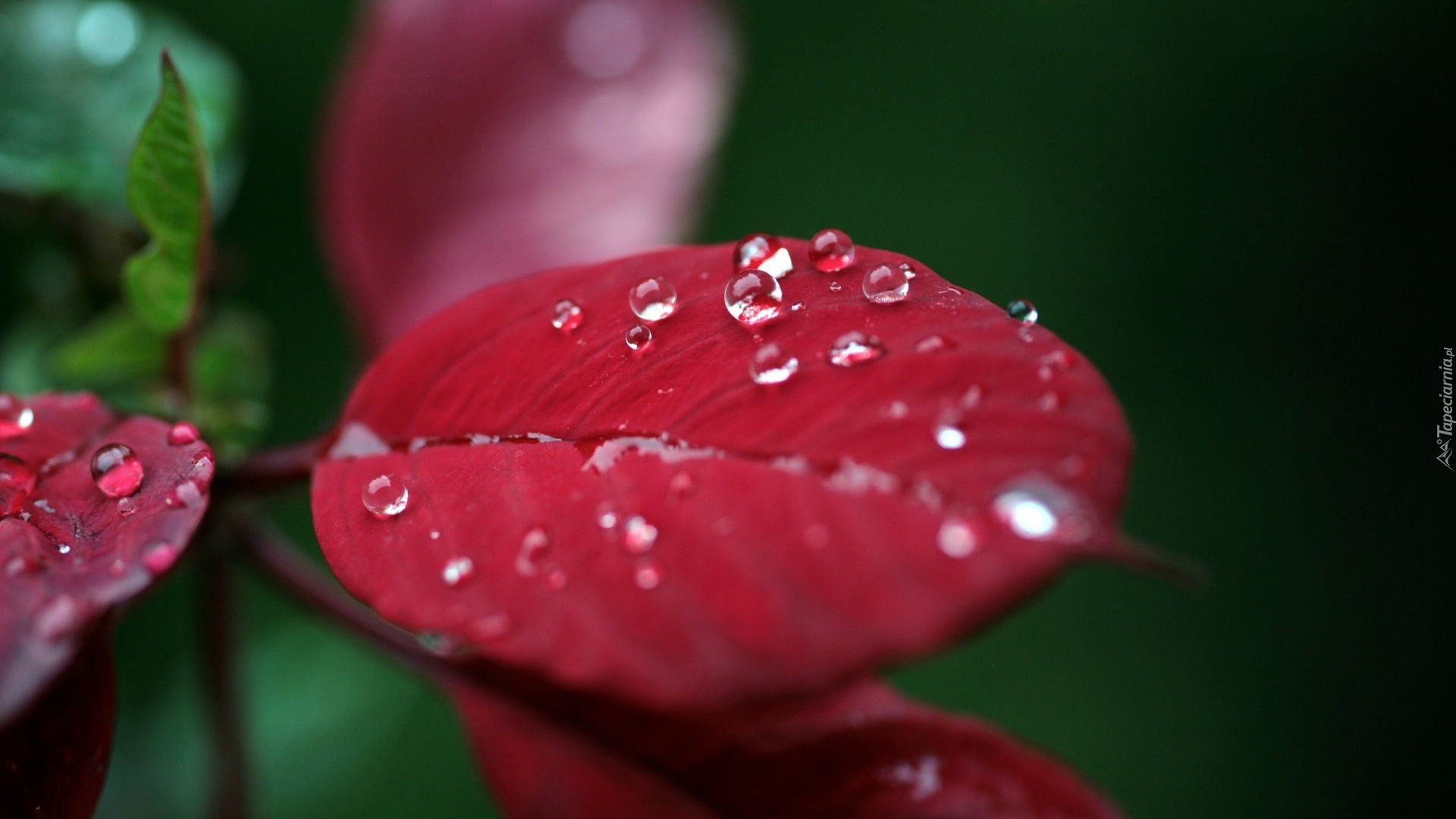 Edytor tapety: Czerwony, Liść, Krople, Makro
