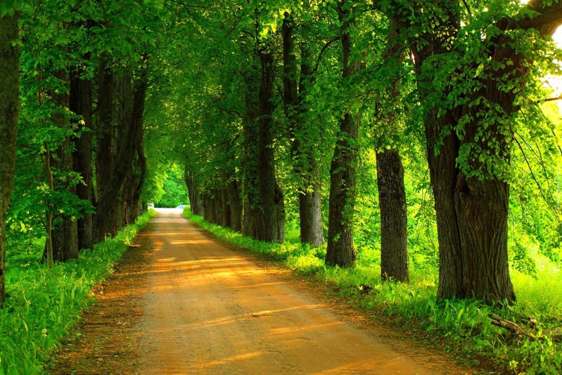 Edytor tapety: Aleja, Zielone, Drzewa, Wiosna