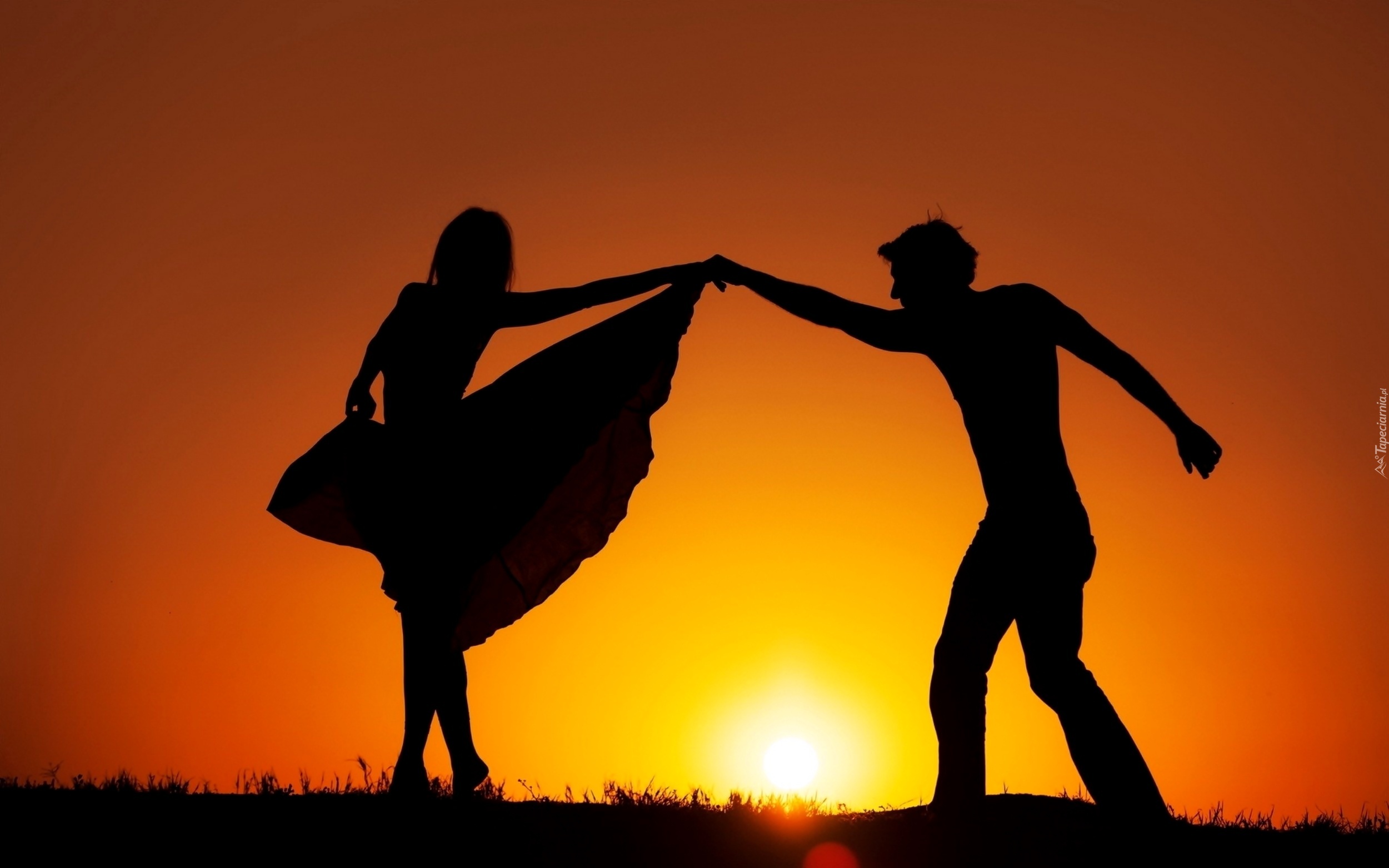 Edytor tapety: Kobieta, Mężczyzna, Taniec, Zachód, Słońca