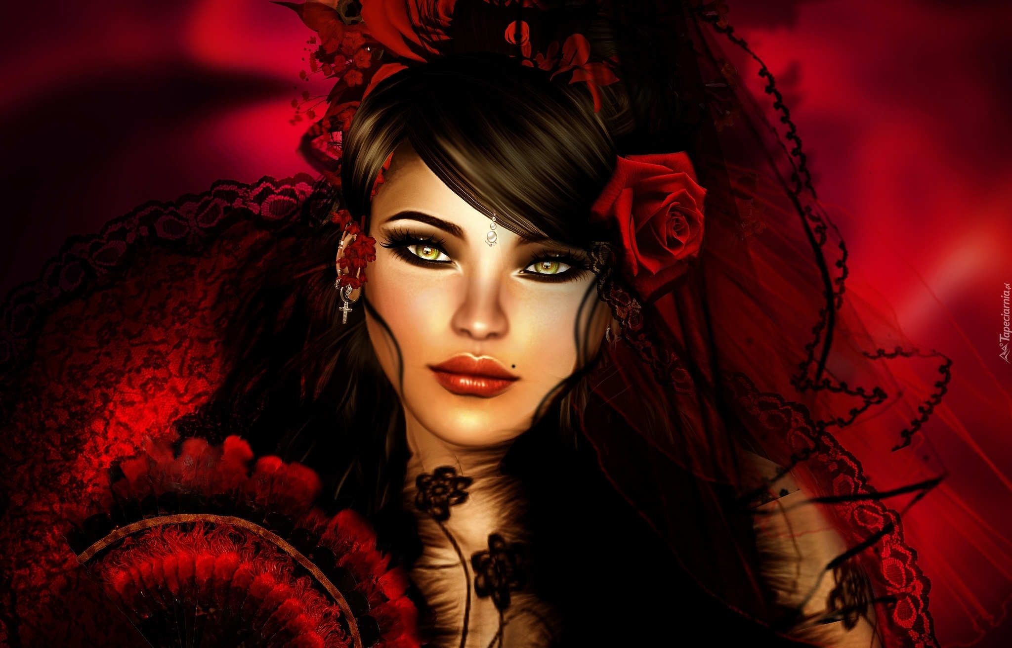 Edytor tapety: Kobieta, Fantasy, Róża, Wachlarz