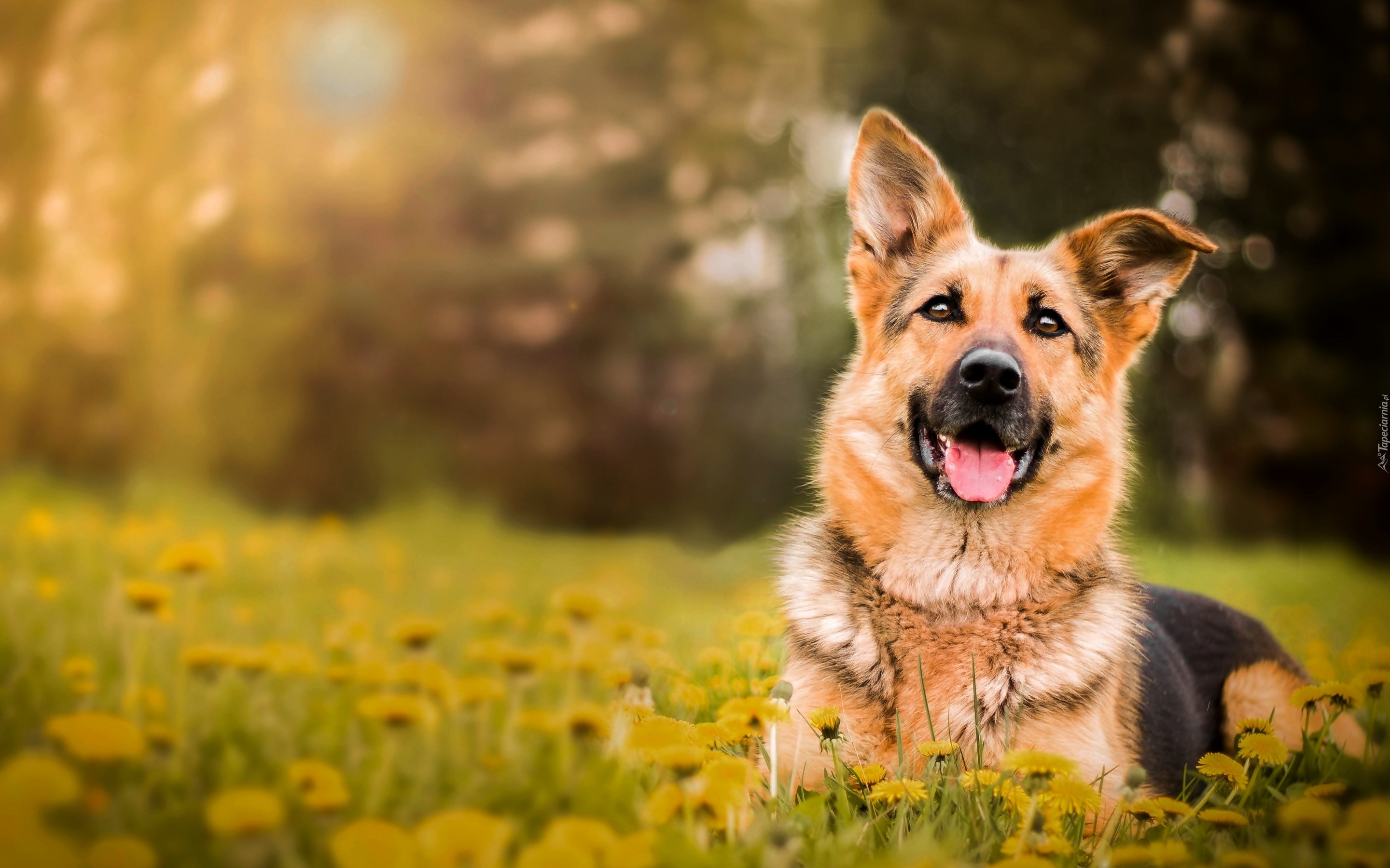 Edytor tapety: Pies, Owczarek, Niemiecki, Łąka
