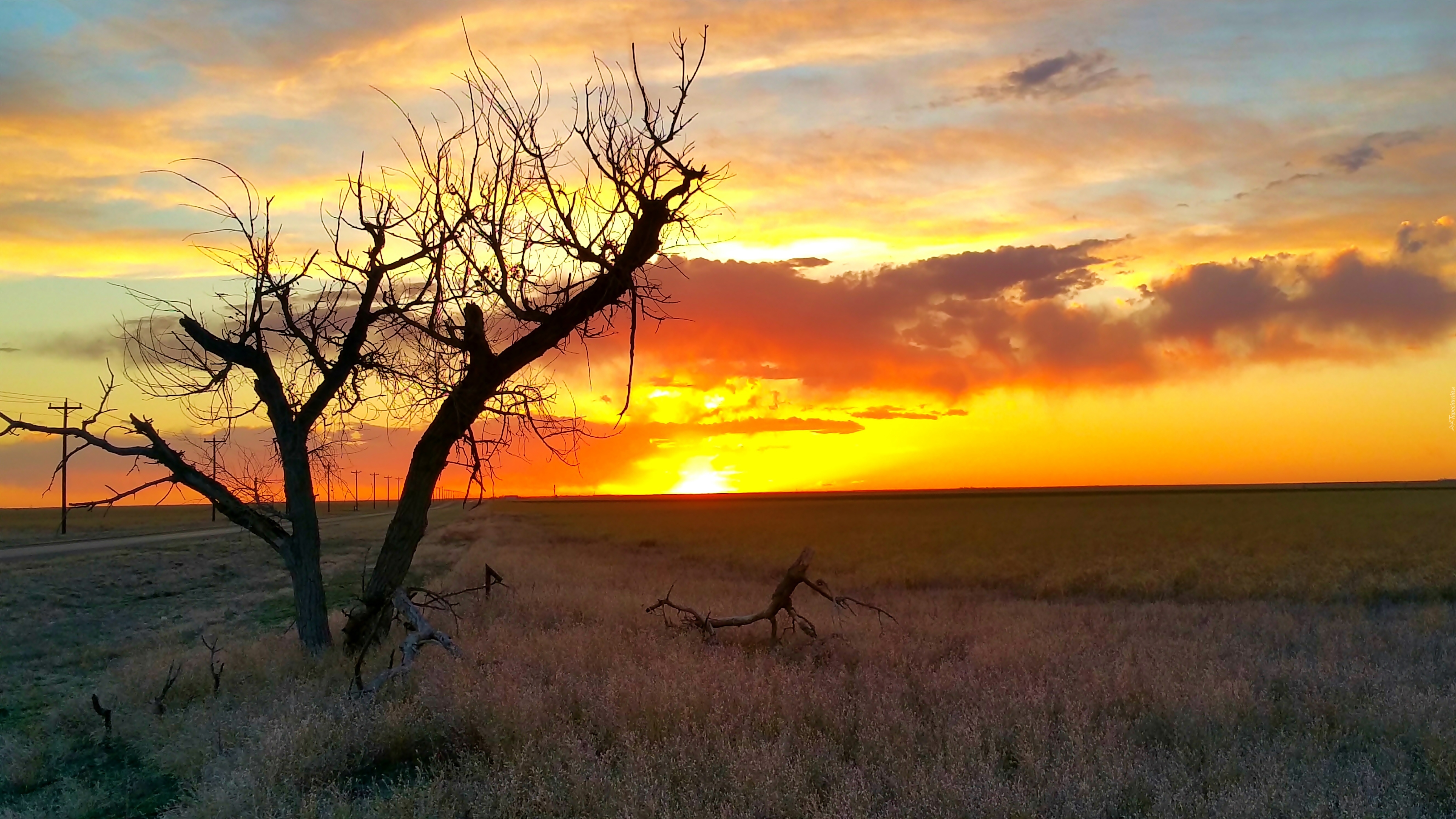 Edytor tapety: Pole, Zachód słońca, Niebo, Drzewo