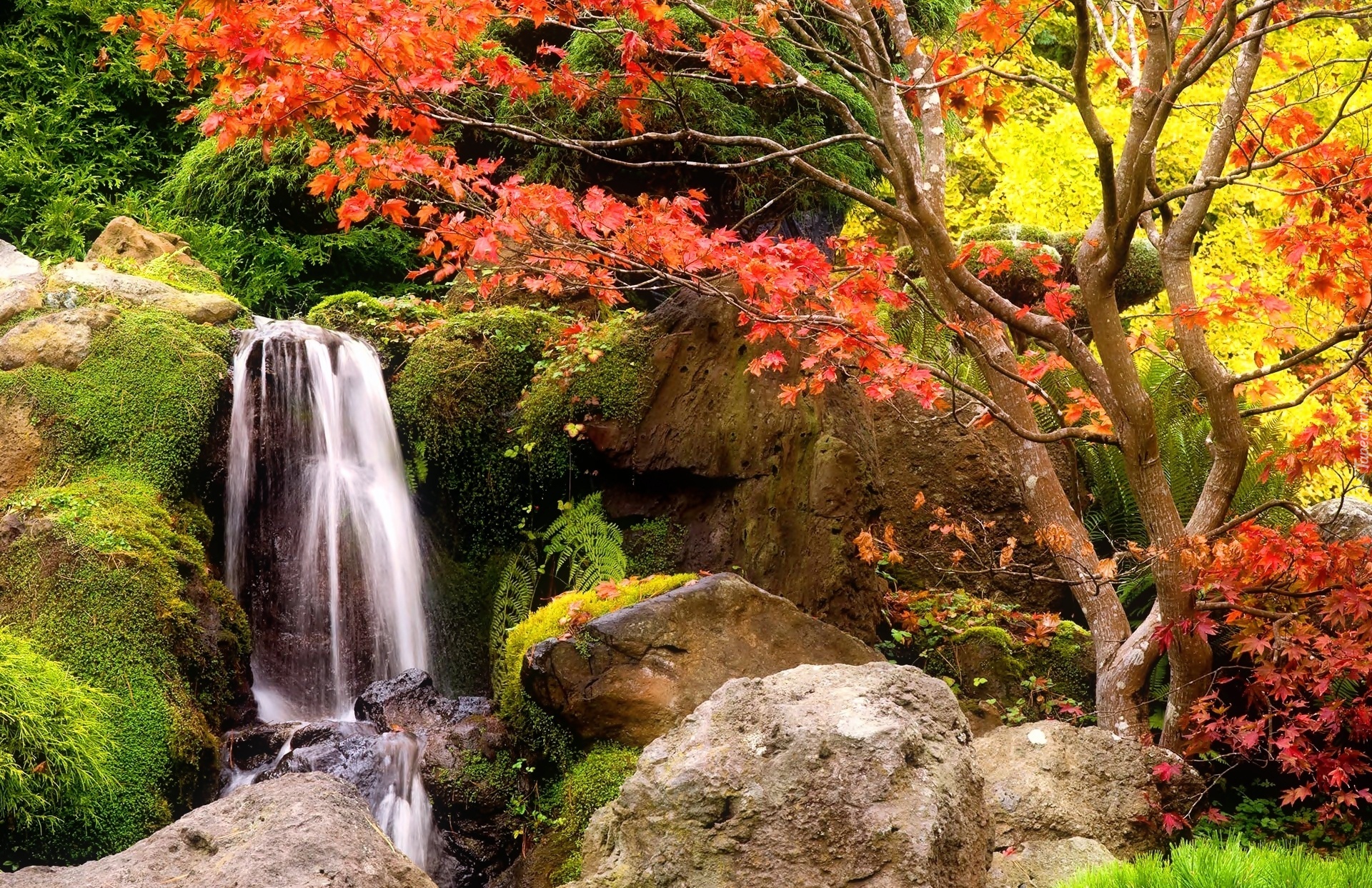 Edytor tapety: Wodospad, Skały, Drzewo