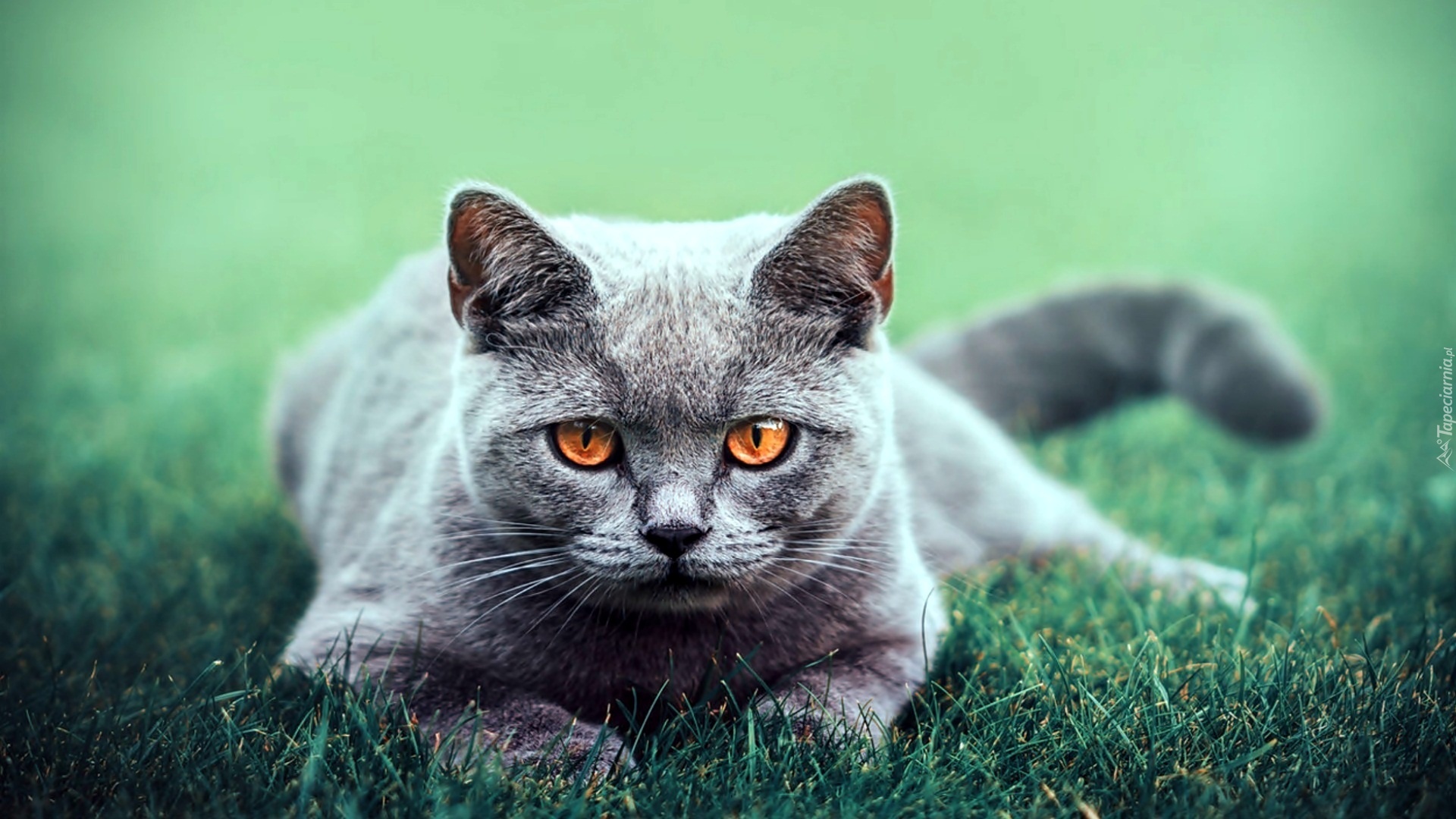 Edytor tapety: Szary, Kot, Mordka, Trawa, Brązowe, Oczy