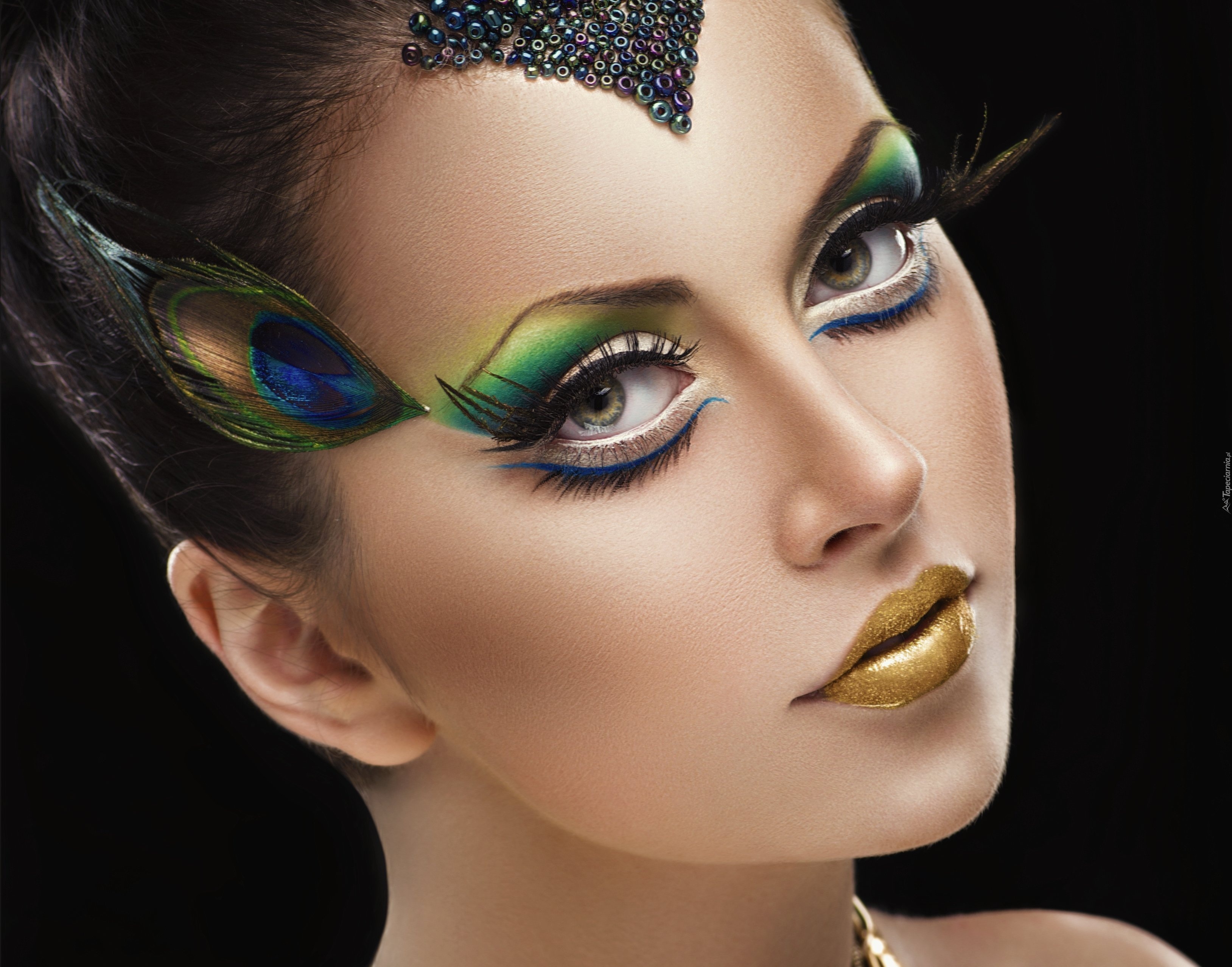 Edytor tapety: Twarz, Kobiety, Makijaż, Pawie, Piórko