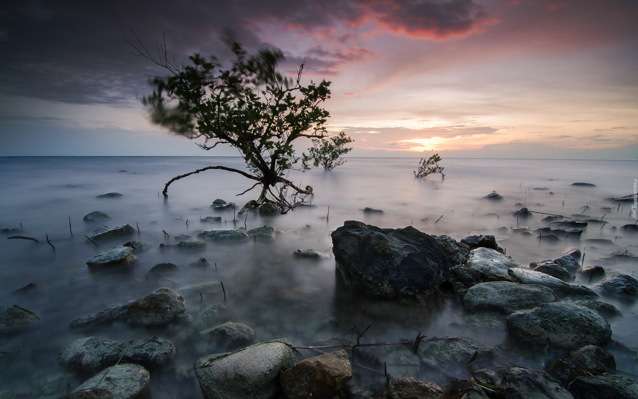 Edytor tapety: Jezioro, Kamienie, Chmury, Drzewo