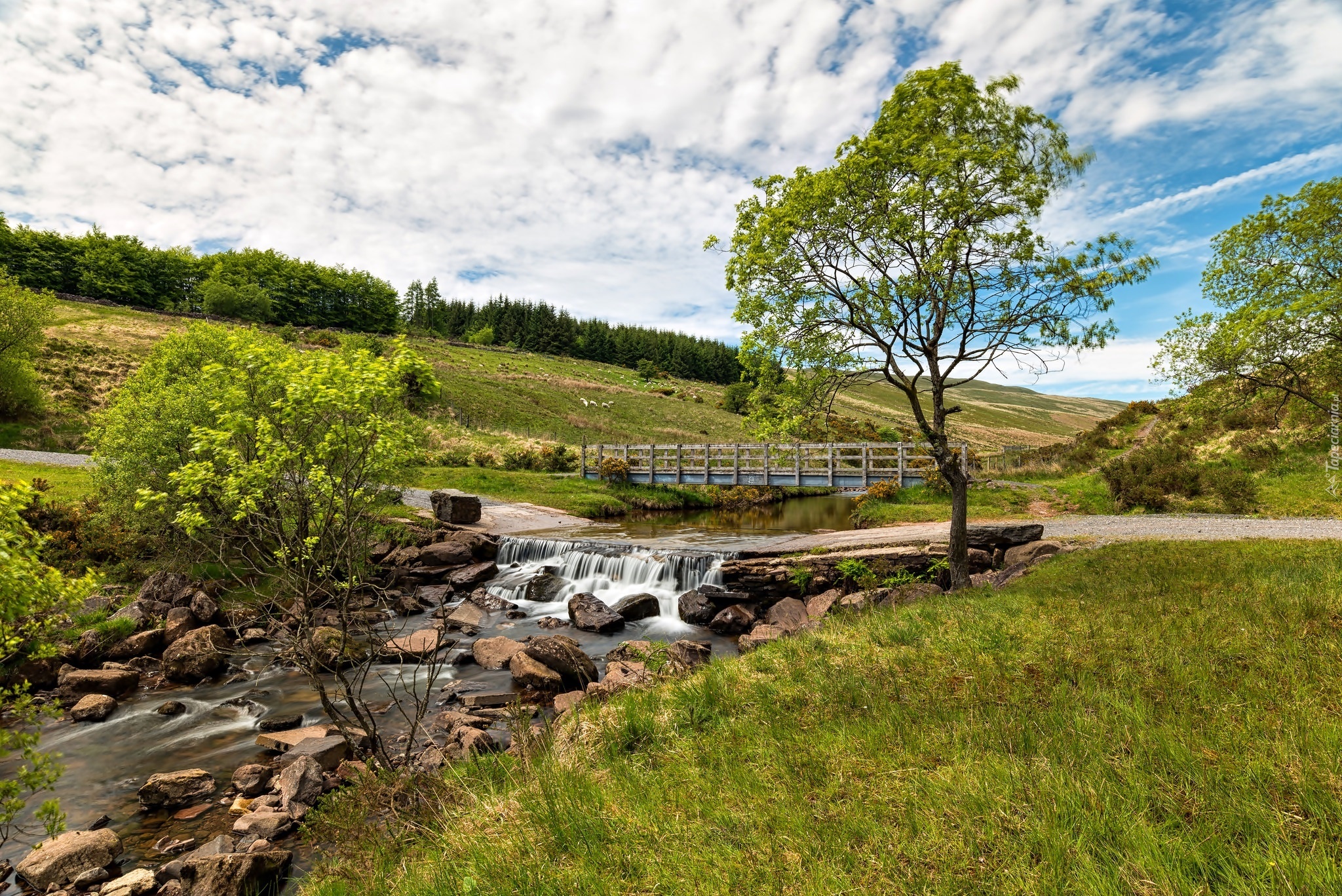 Edytor tapety: Las, Łąki, Strumień, Most, Obłoki
