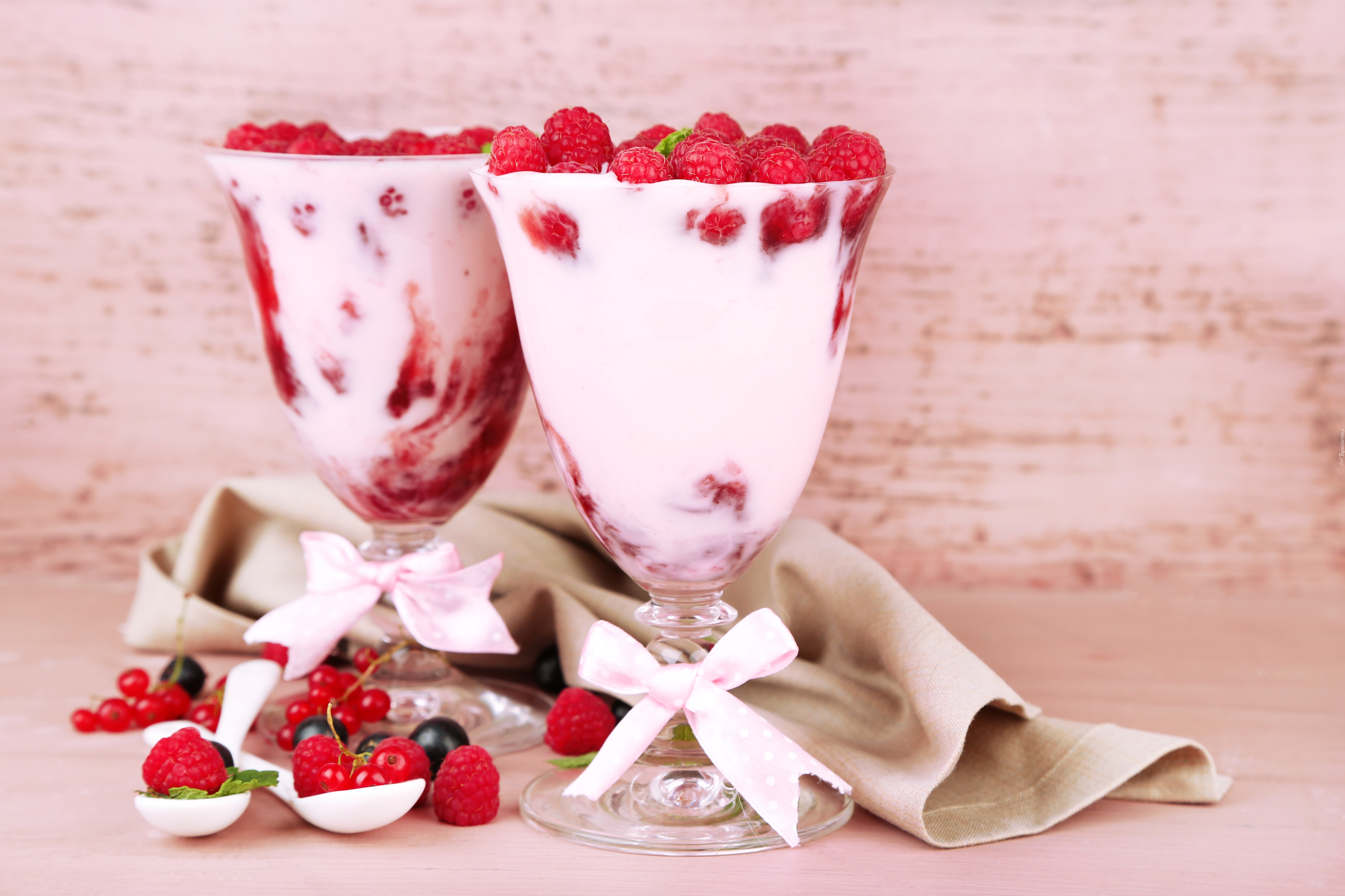 Edytor tapety: Malinowy, Deser, Kieliszki, Kokardy