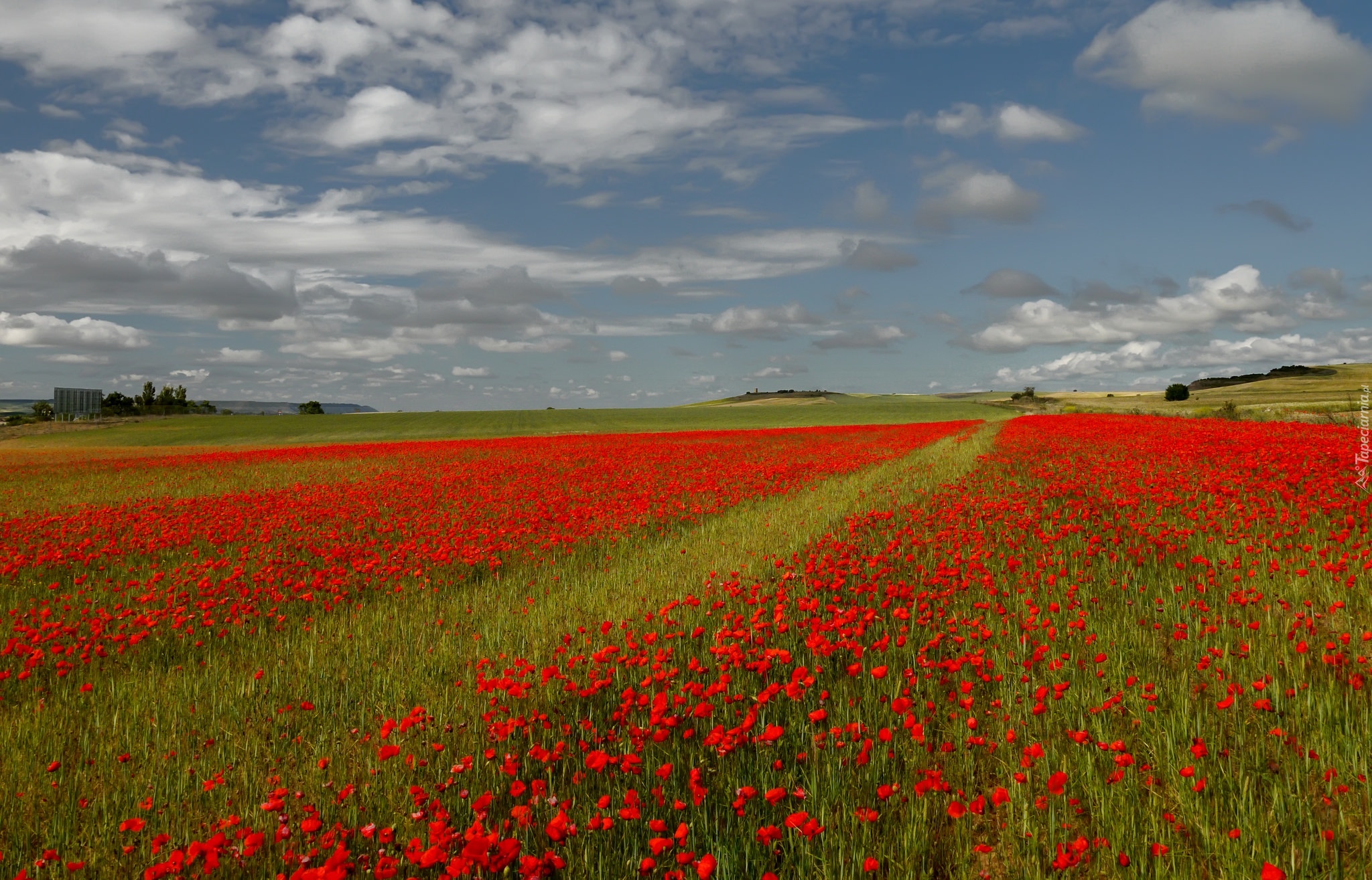 Edytor tapety: Pole, Maki, Niebo, Lato