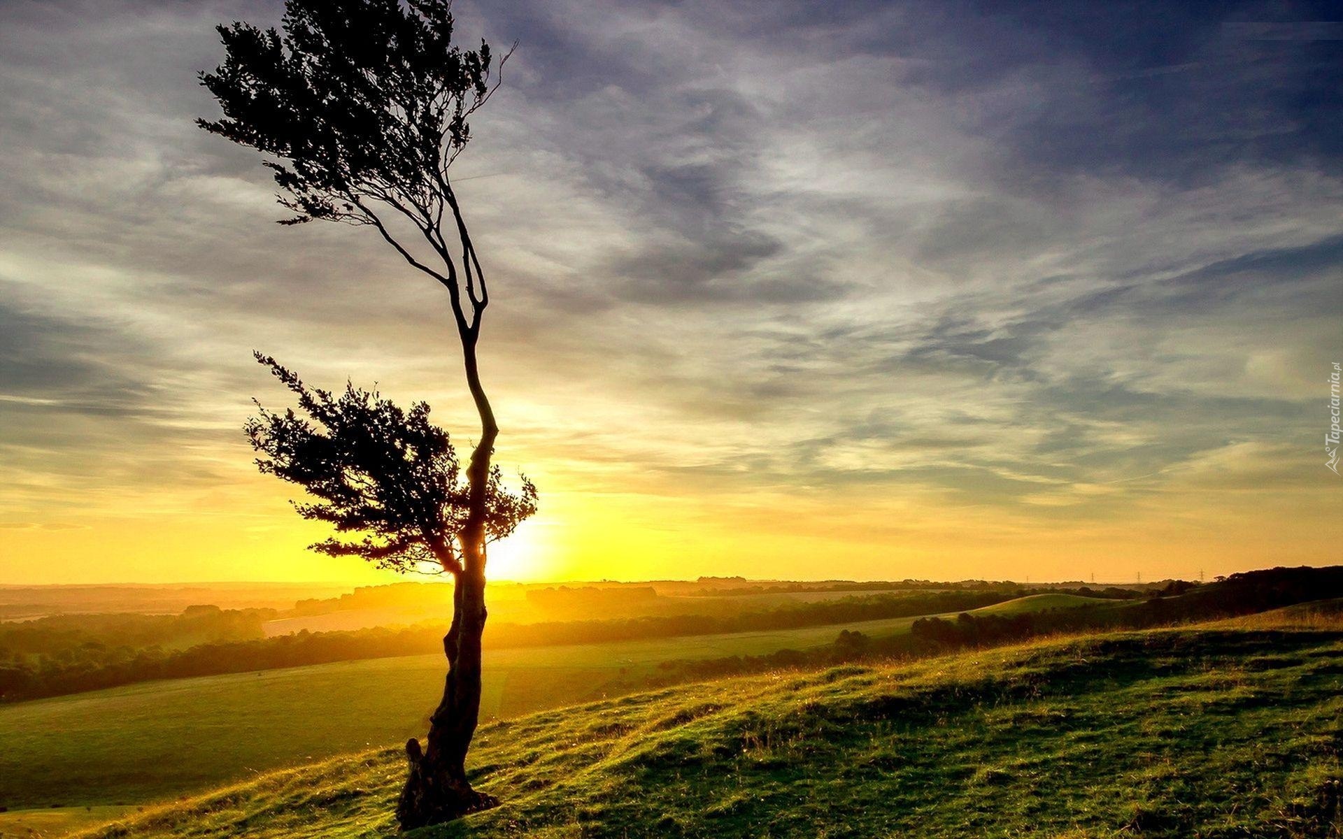 Edytor tapety: Pole, Drzewo, Słońce, Niebo
