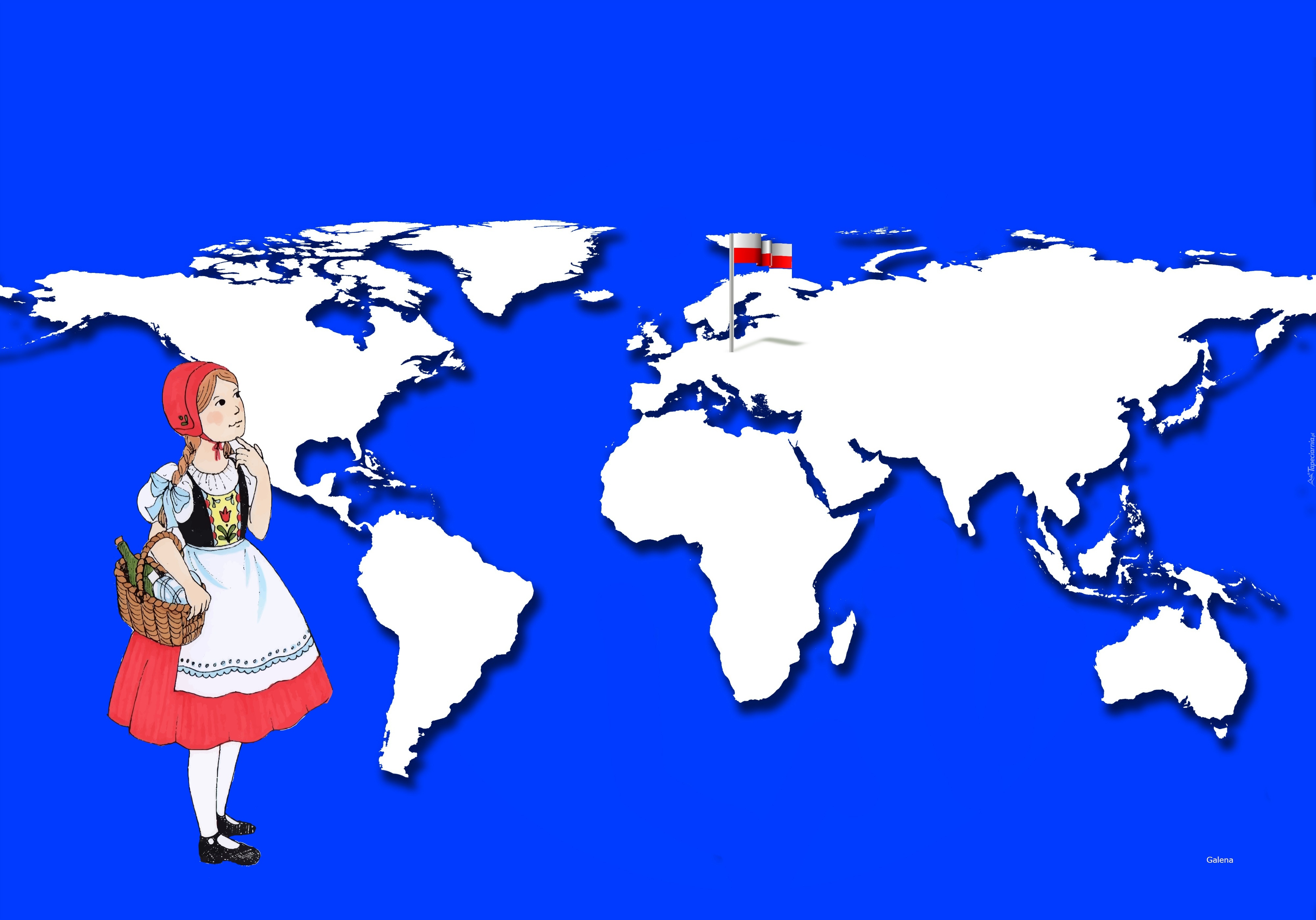 Edytor tapety: Kontynenty, Świat, Flaga, Dziewczynka, Strój, Ludowy, Grafika