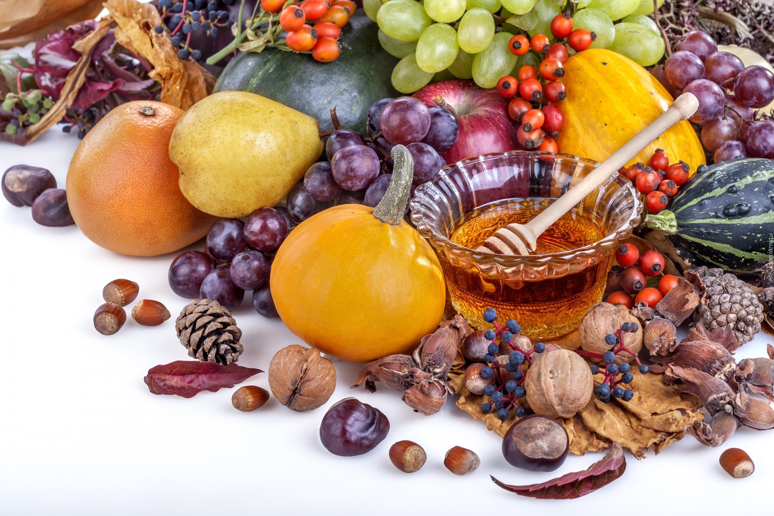 Edytor tapety: Jesienna, Kompozycja, Miód, Dynie, Orzechy