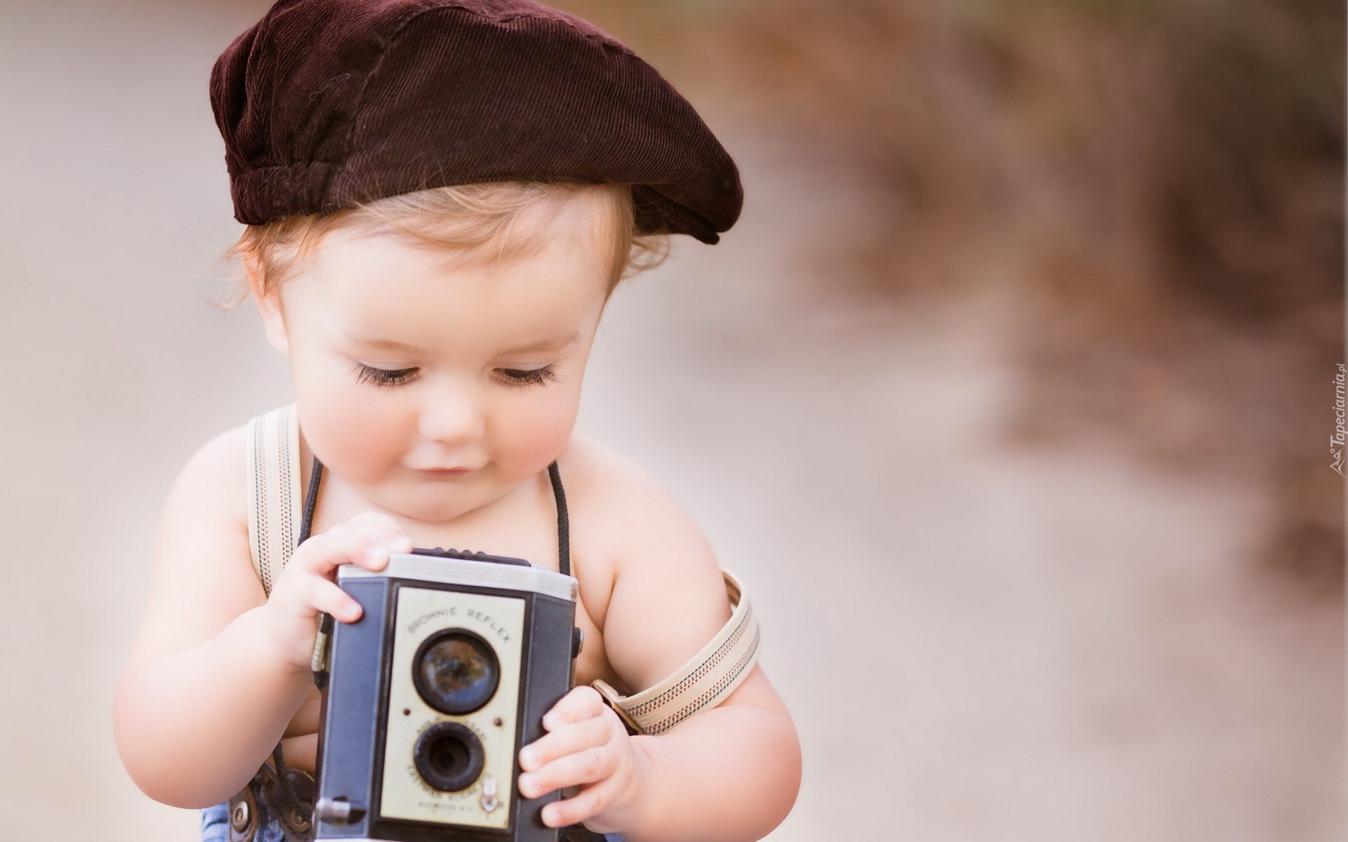 Edytor tapety: Chłopczyk, Dziecko, Beret, Aparat, Fotograficzny