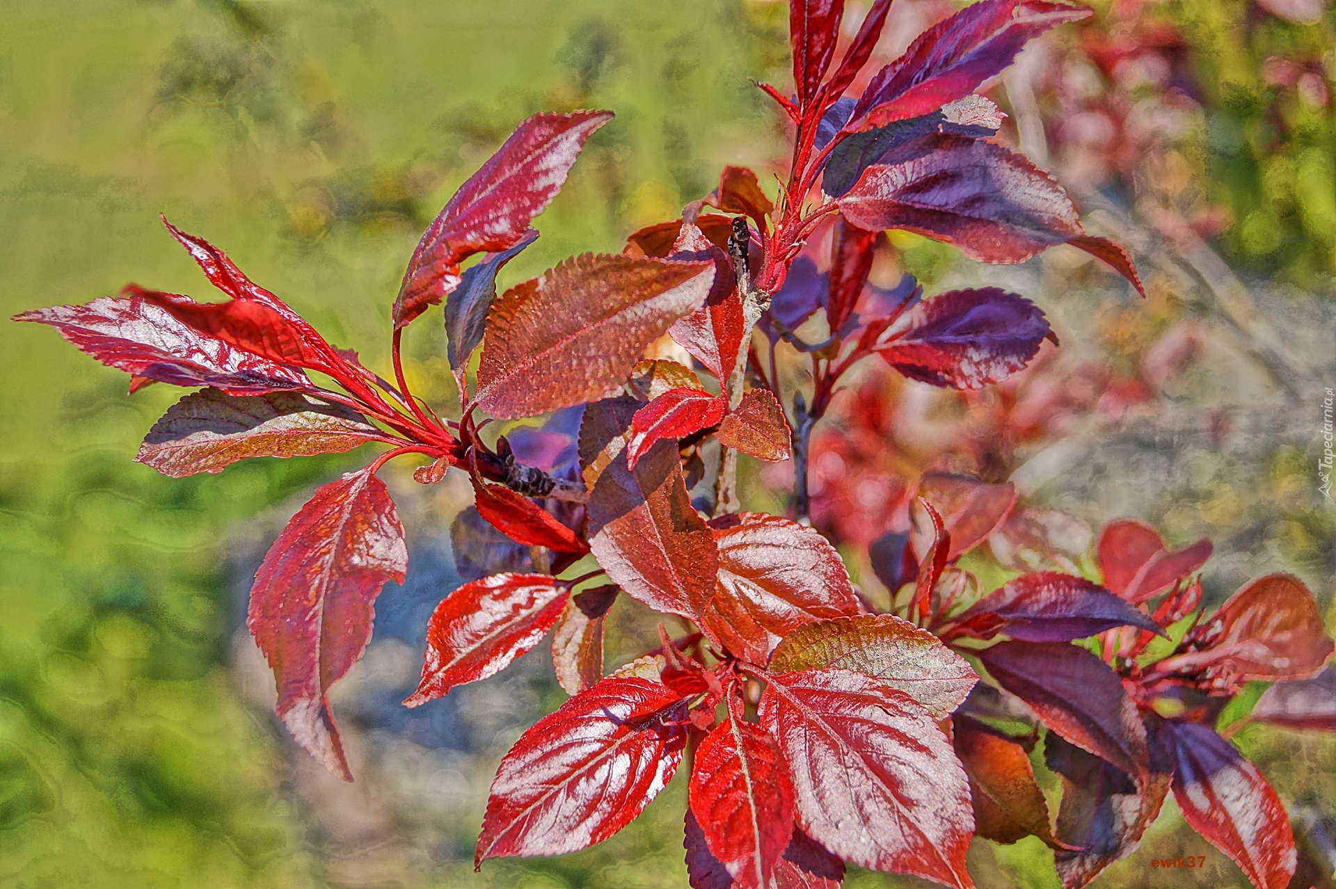 Edytor tapety: Laurowiśnia, Czerwone, Liście