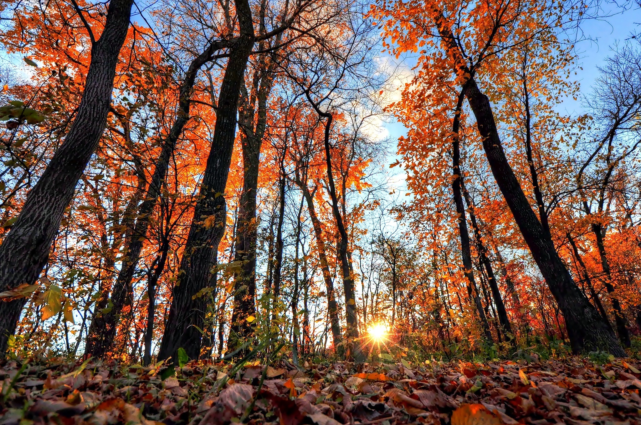 Edytor tapety: Jesień, Las, Liście, Promienie, Słońce