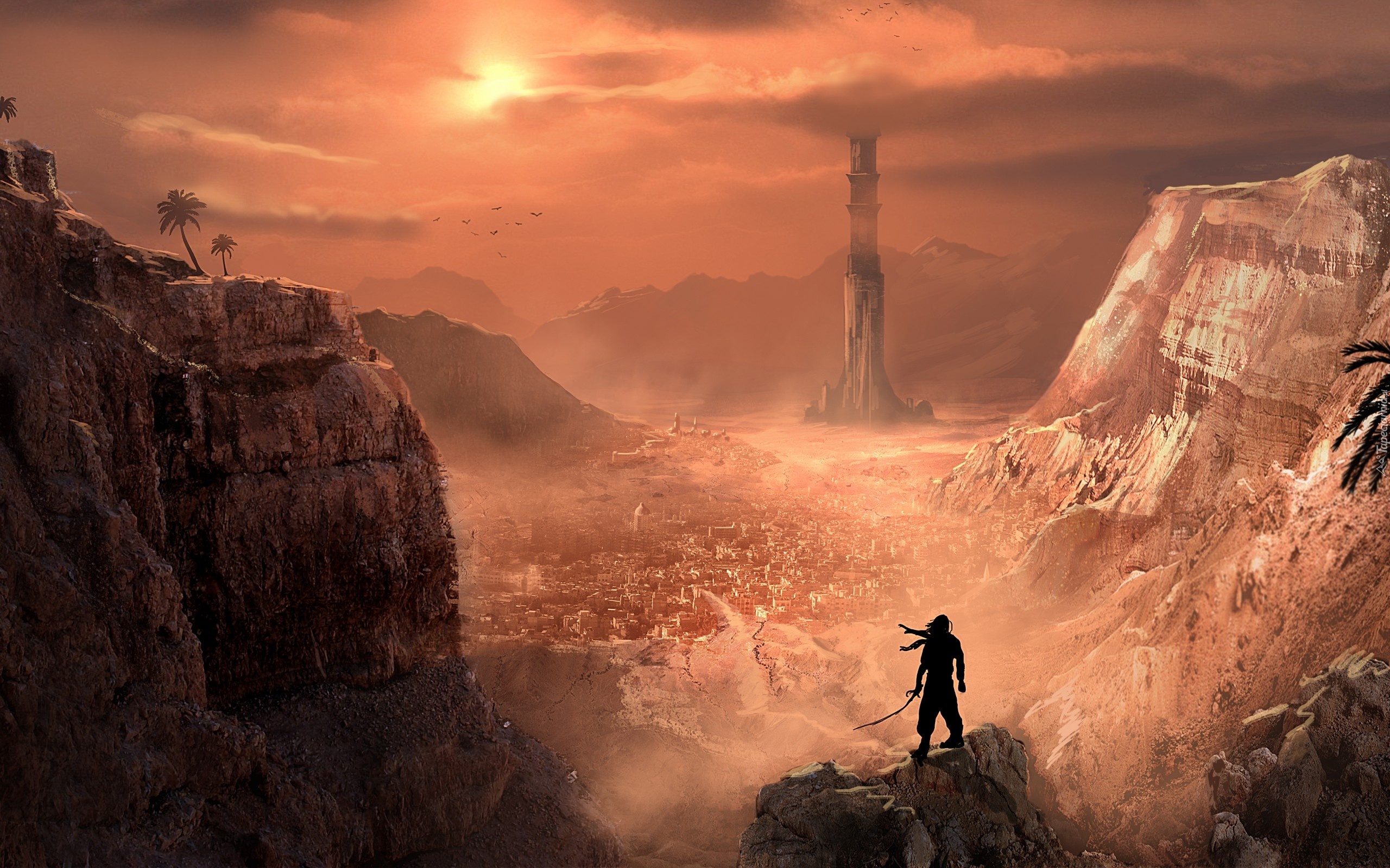 Edytor tapety: Grafika, Fantasy, Kanion, Góry, Miasto, Wojownik