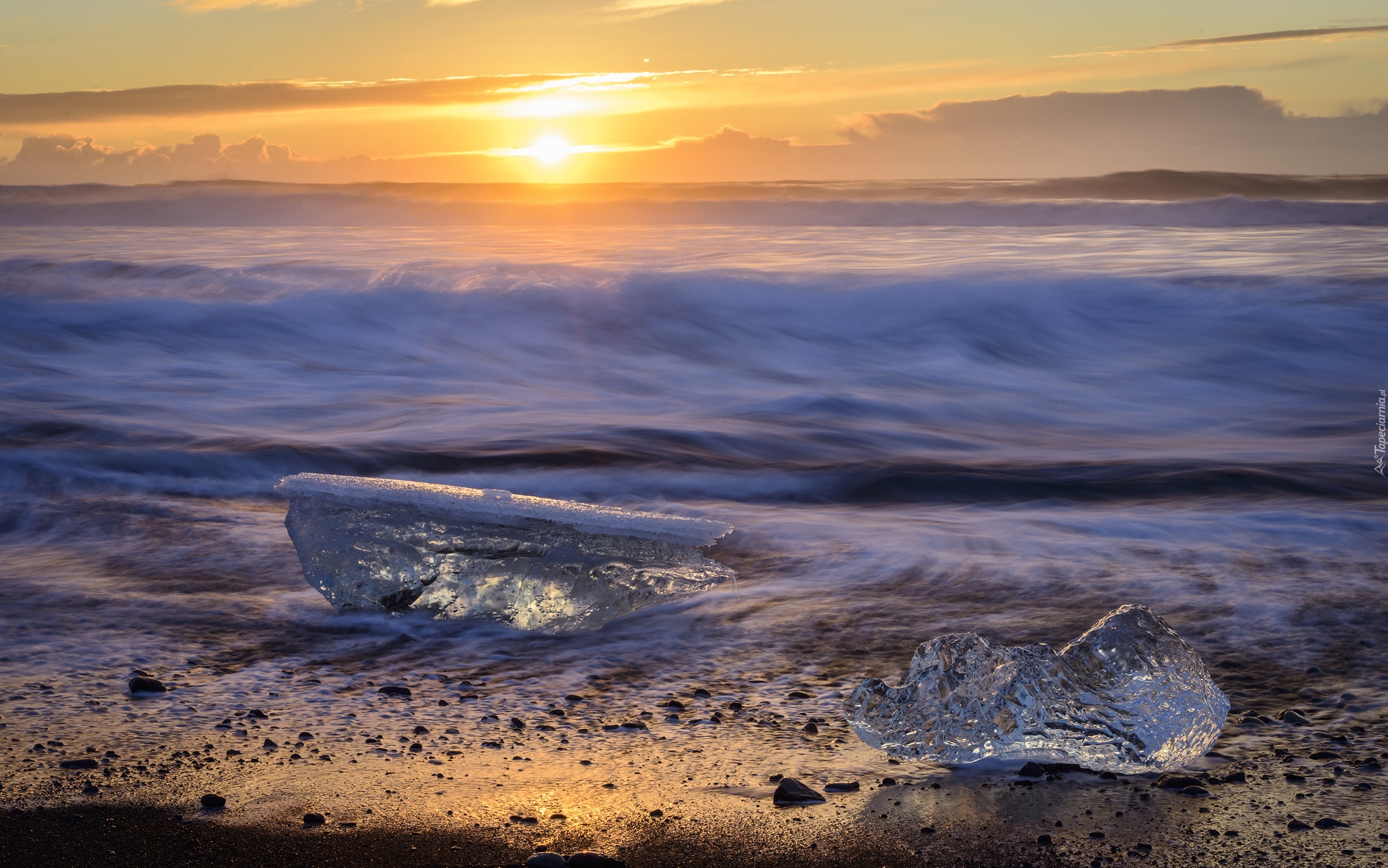 Edytor tapety: Morze, Wschód słońca, Bryły lodu