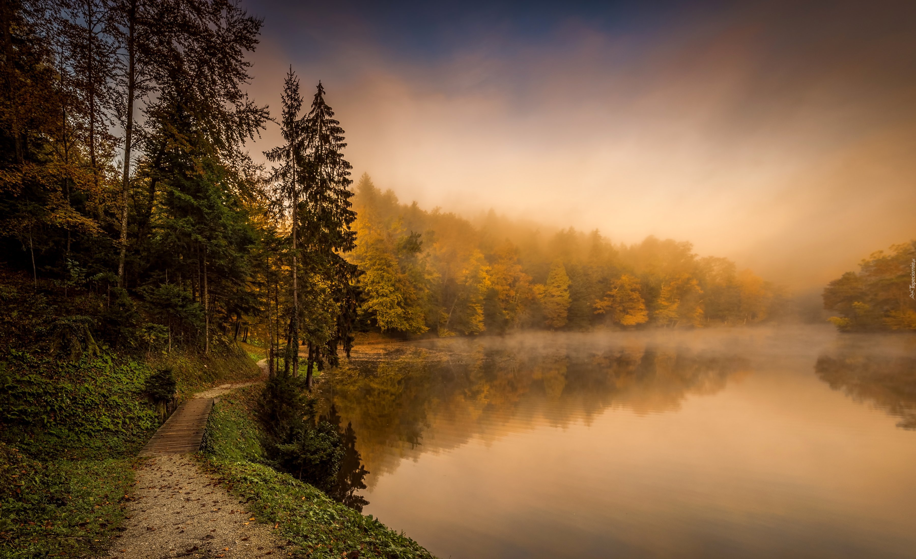 Edytor tapety: Chorwacja, Jezioro, Las, Mgła