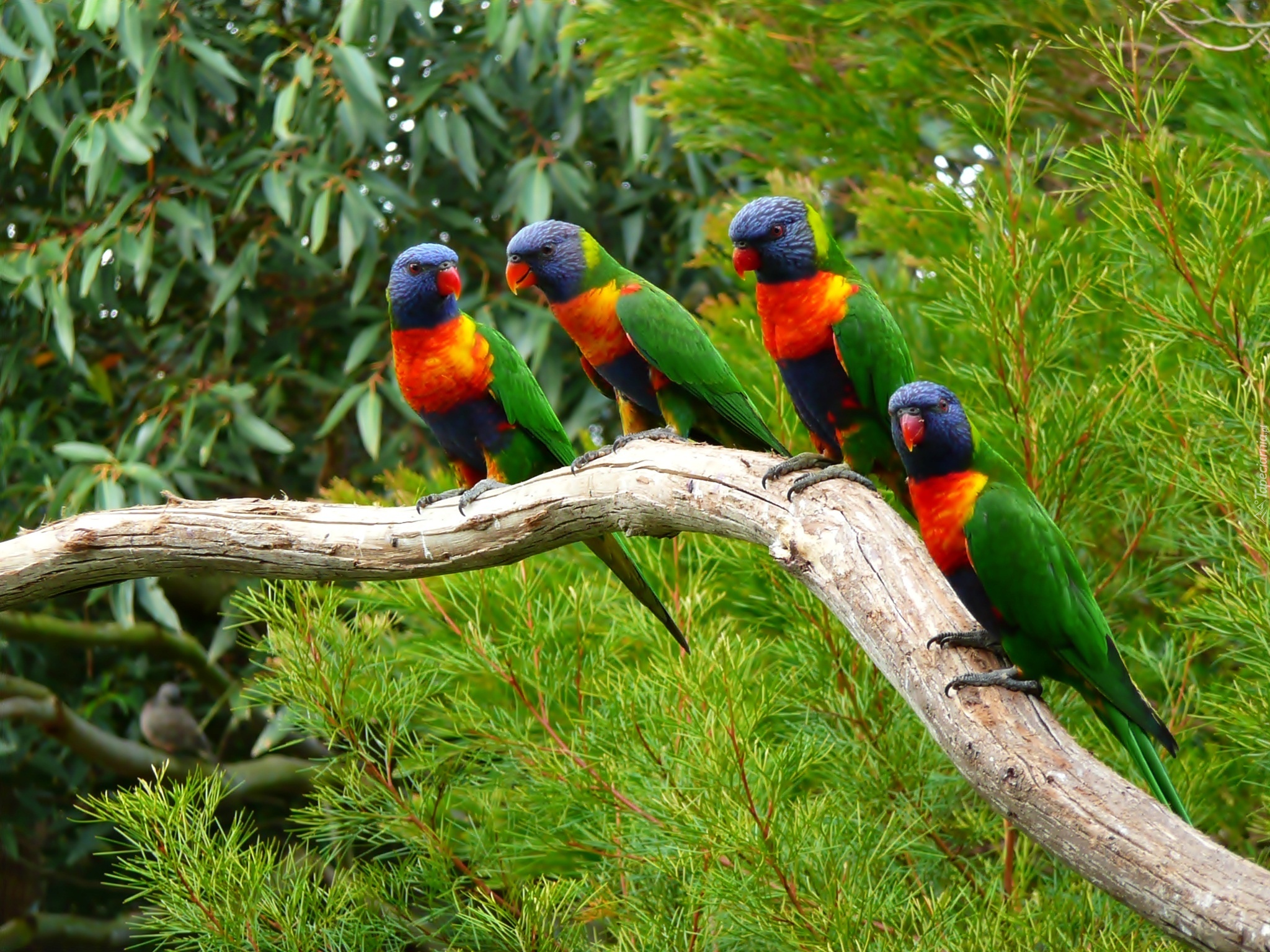 Edytor tapety: Cztery, Papugi, Drzewa, Konar