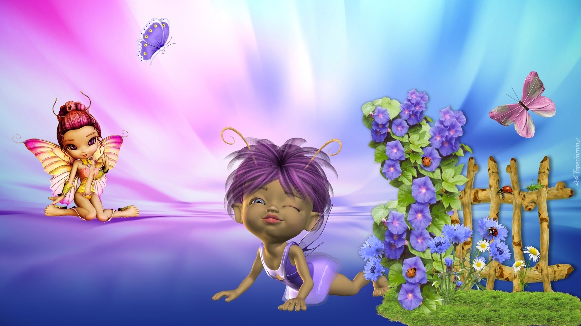 Edytor tapety: Motylki, Płotek, Kwiaty
