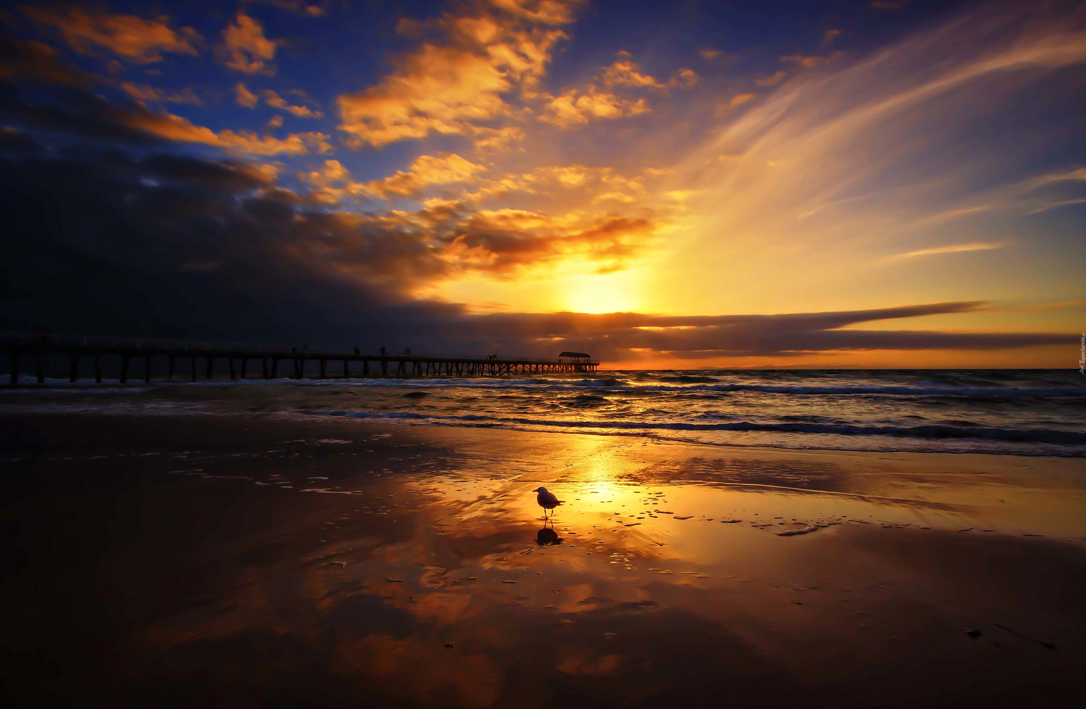 Edytor tapety: Morze, Chmury, Zachód słońca, Ptak