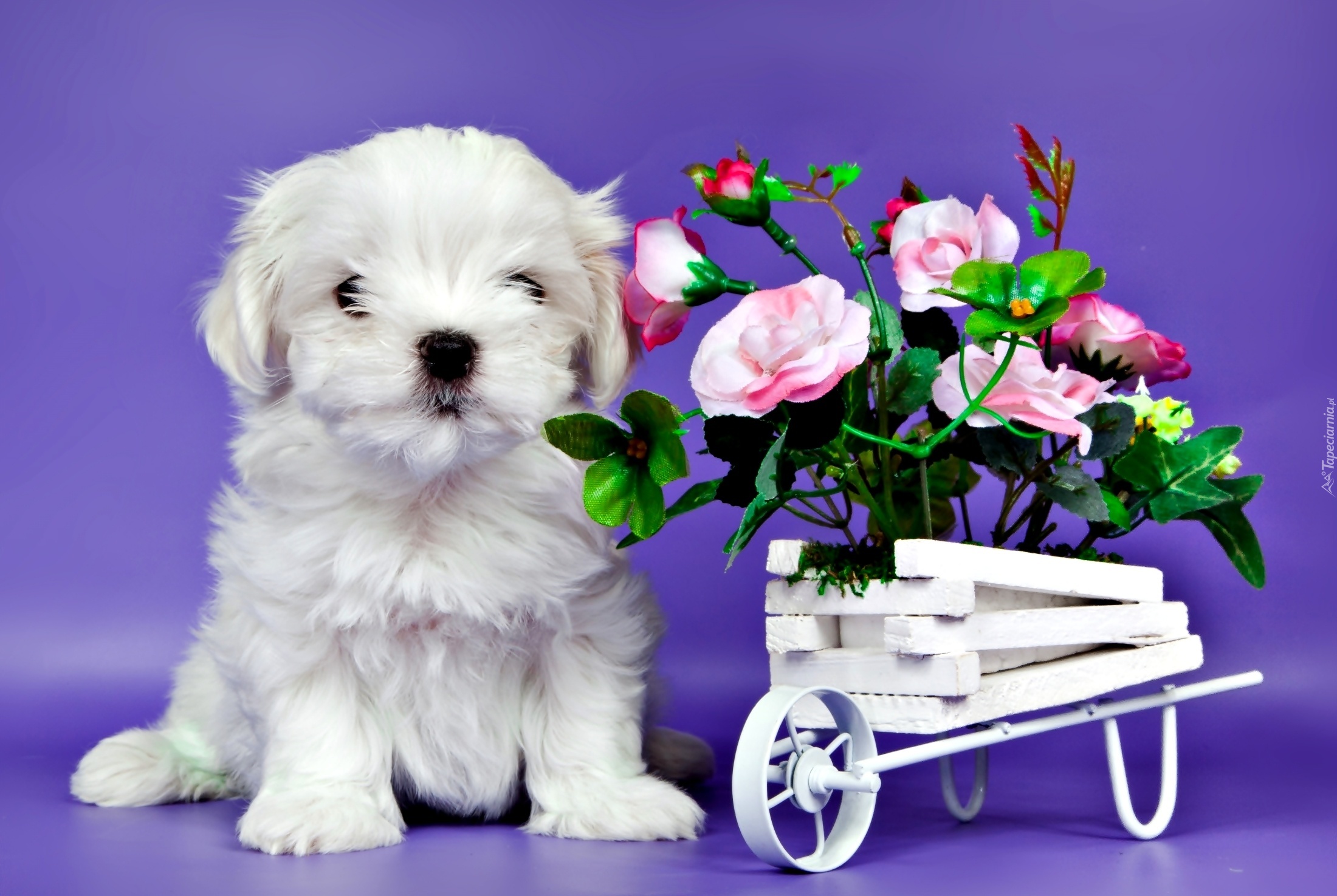 Edytor tapety: Biały, Szczeniak, Róże, Wózek
