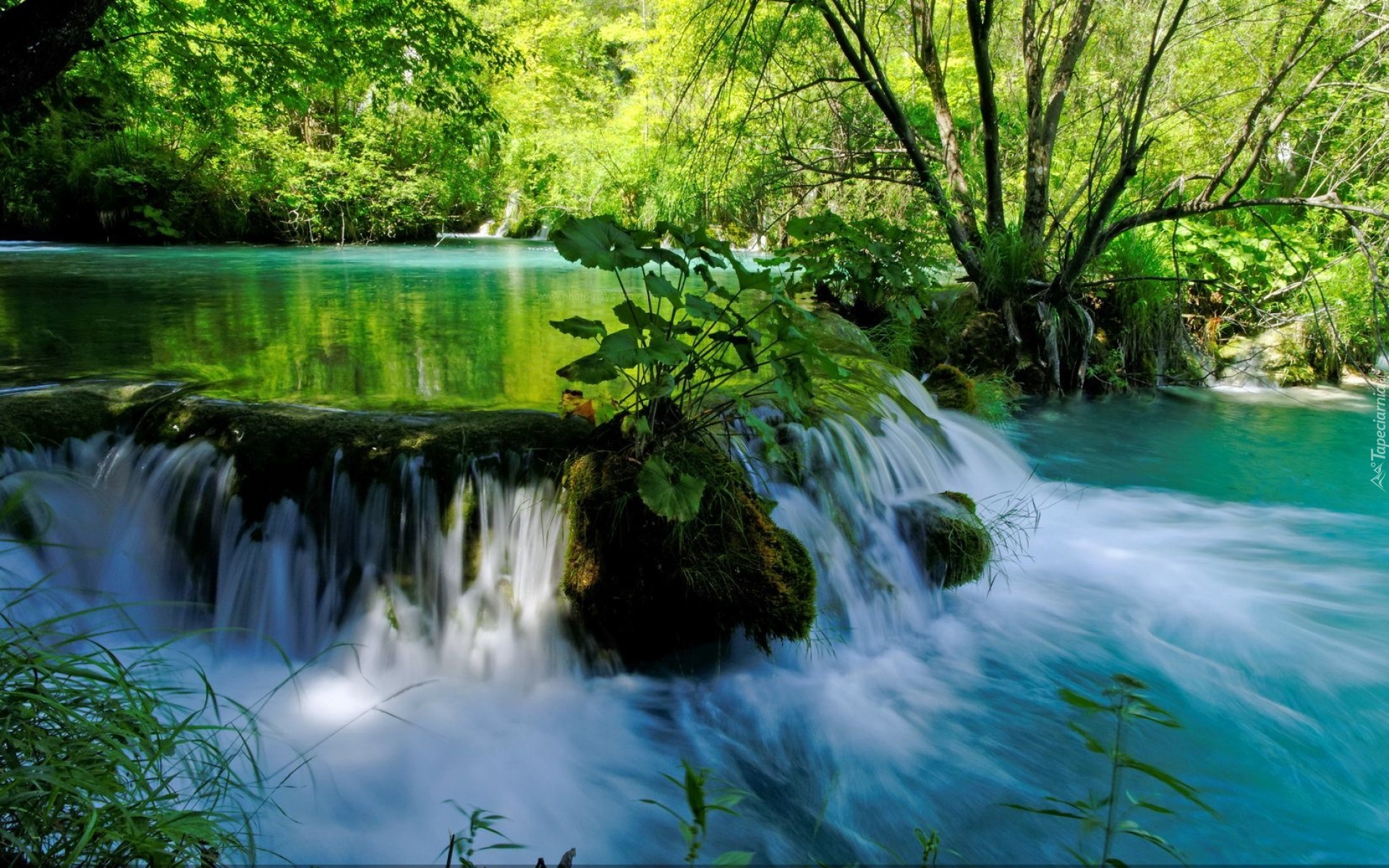 Edytor tapety: Wodospad, Park, Drzewa, Krzewy