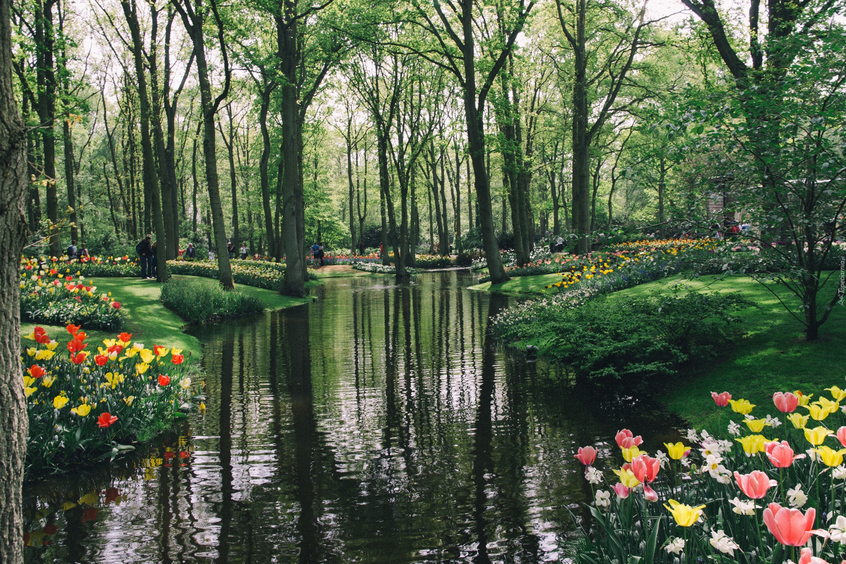Edytor tapety: Park, Rzeka, Tulipany, Drzewa, Ludzie