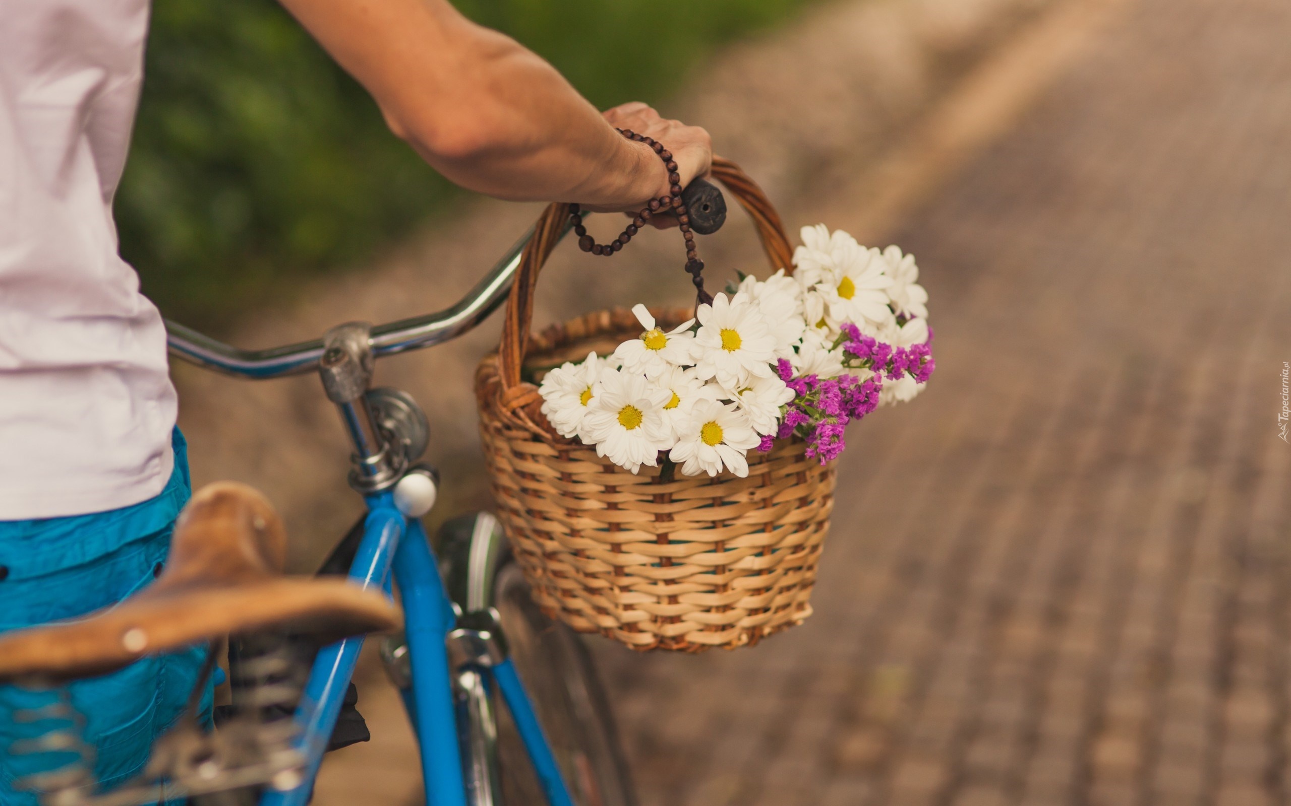 Edytor tapety: Rower, Niebieski, Margerytki, Koszyk