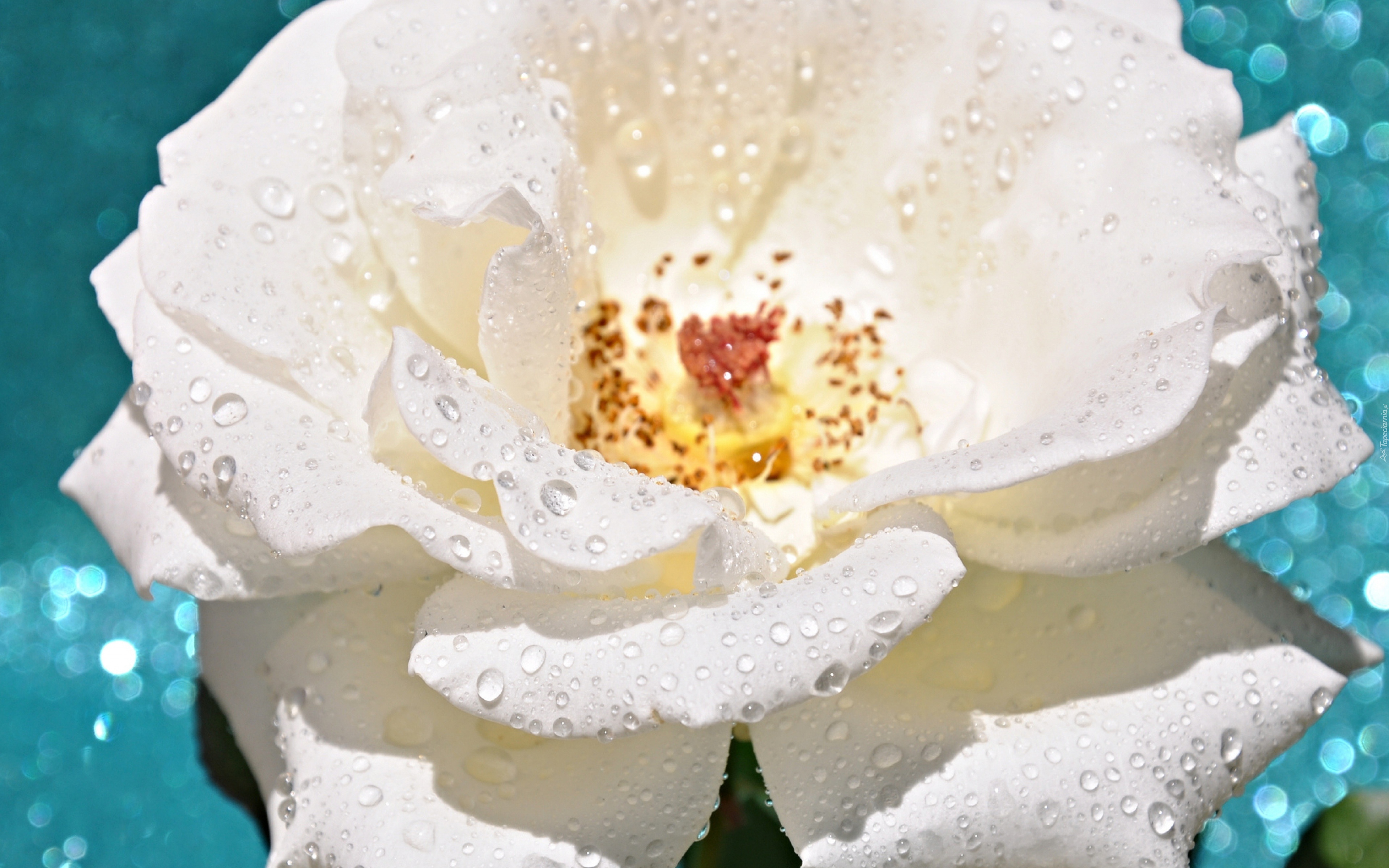 Edytor tapety: Biała, Róża, Krople, Rosy