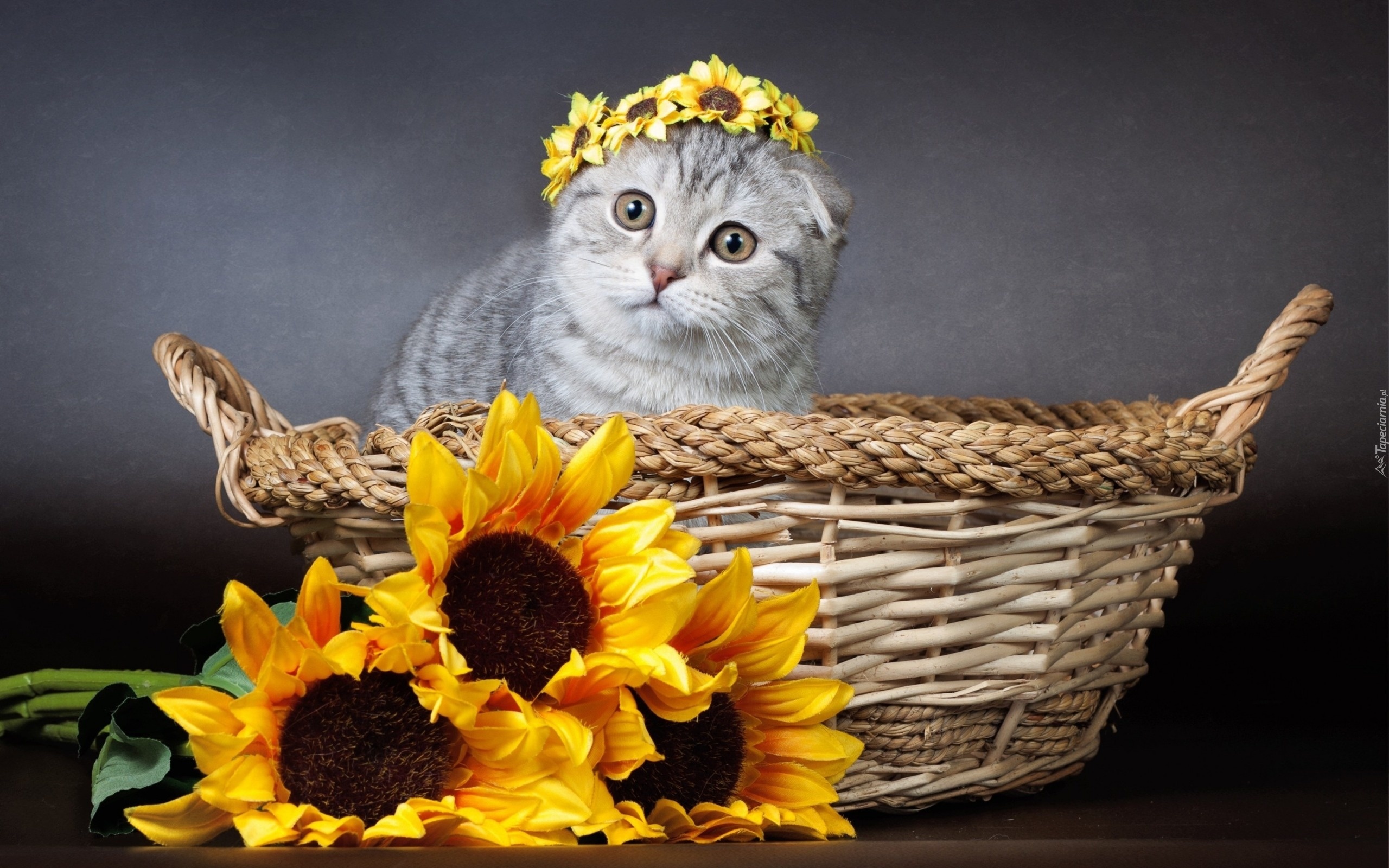 Edytor tapety: Kot, Koszyczek, Kwiaty