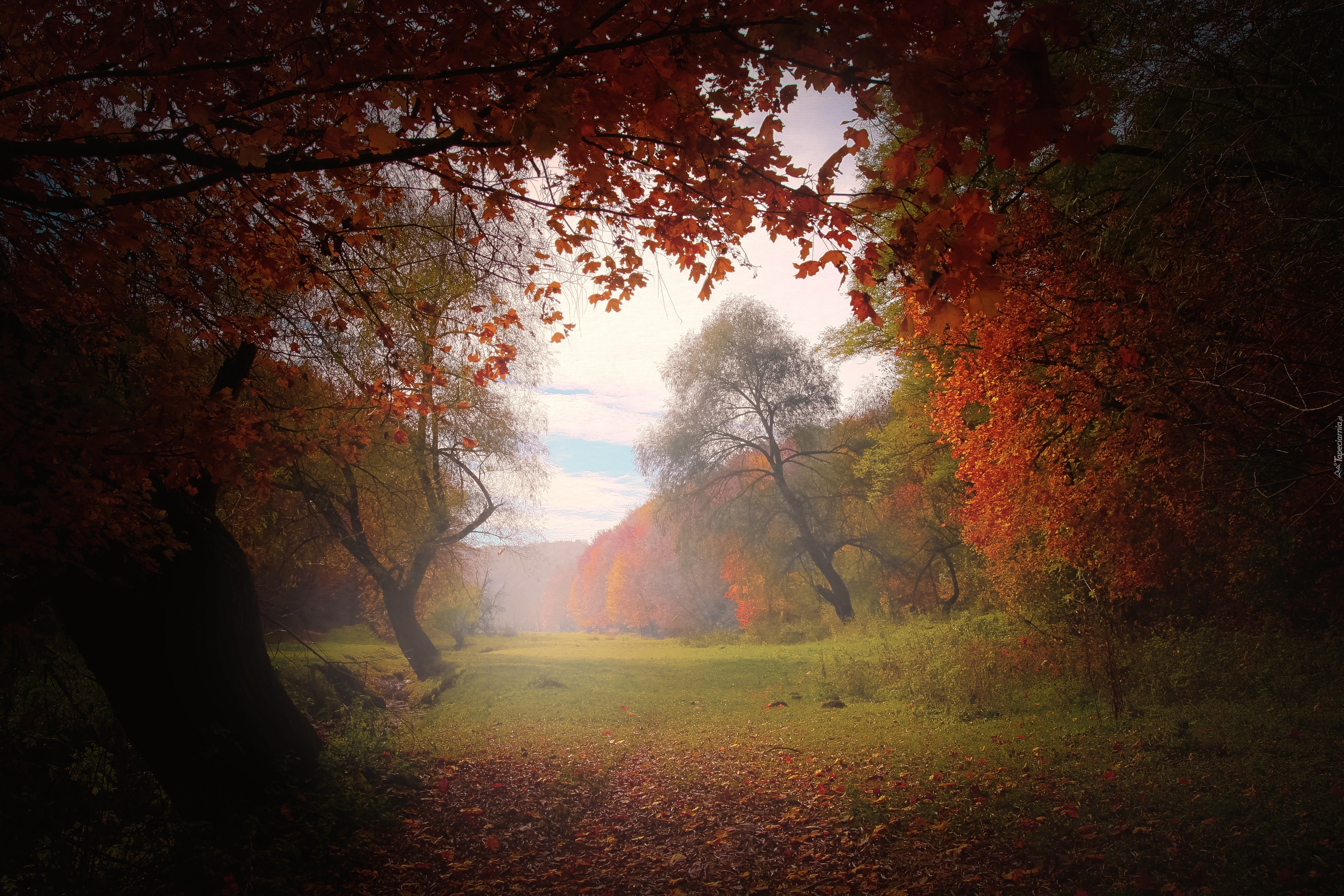 Edytor tapety: Las, Polana, Jesień, Mgła