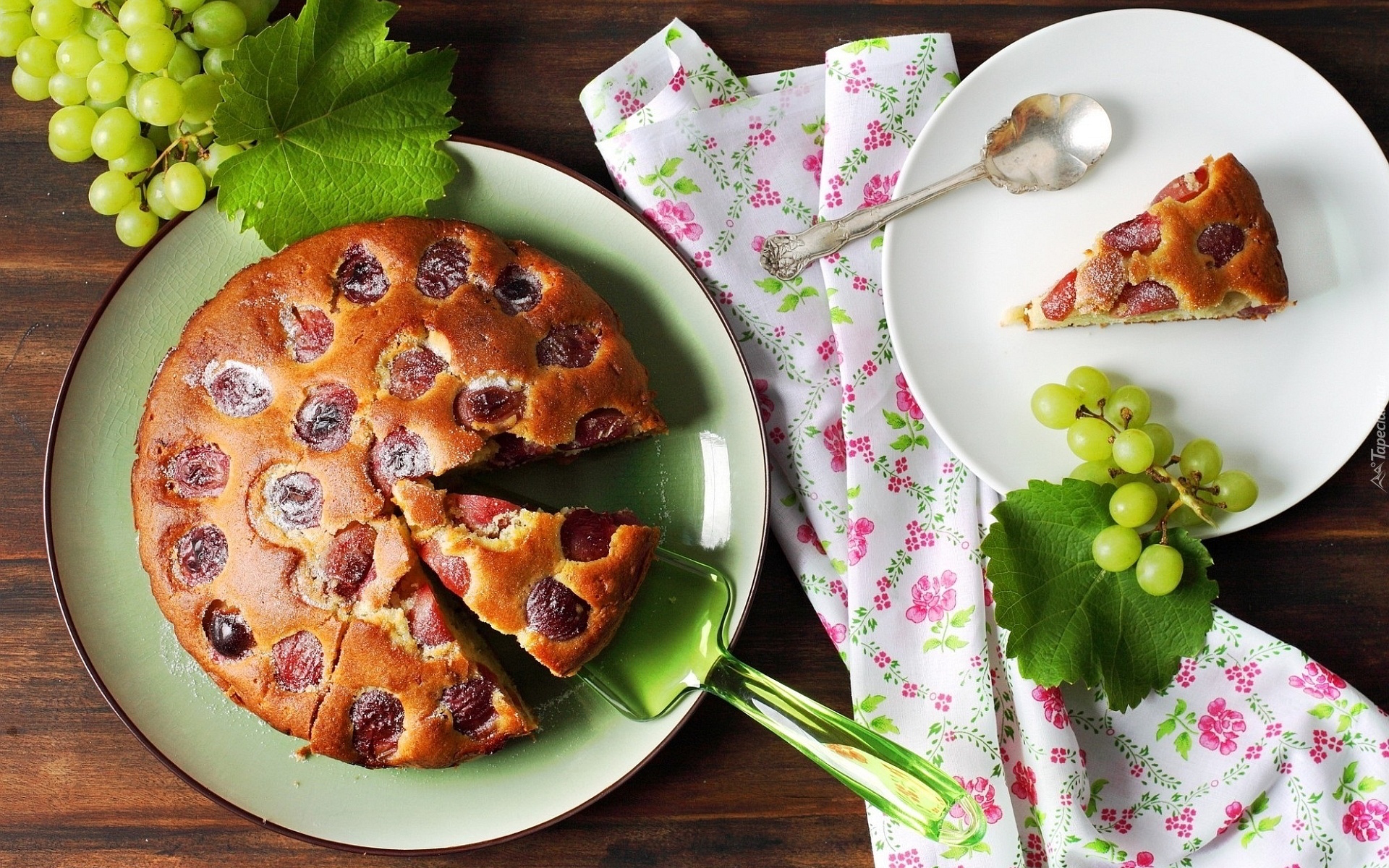 Edytor tapety: Ciasto, Talerzyki, Serwetka, Winogrona