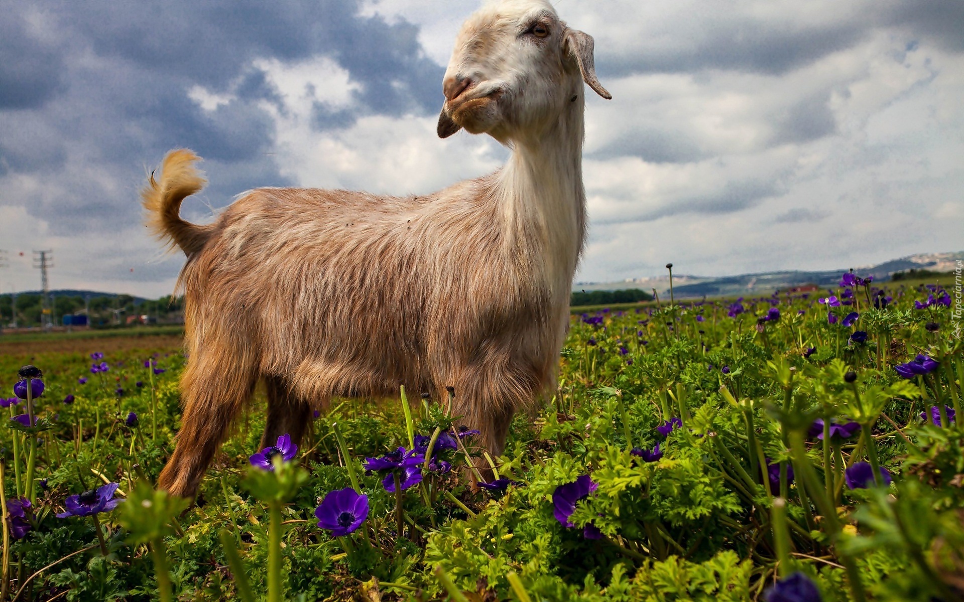 Edytor tapety: Koza, Łąka, Fioletowe, Kwiaty